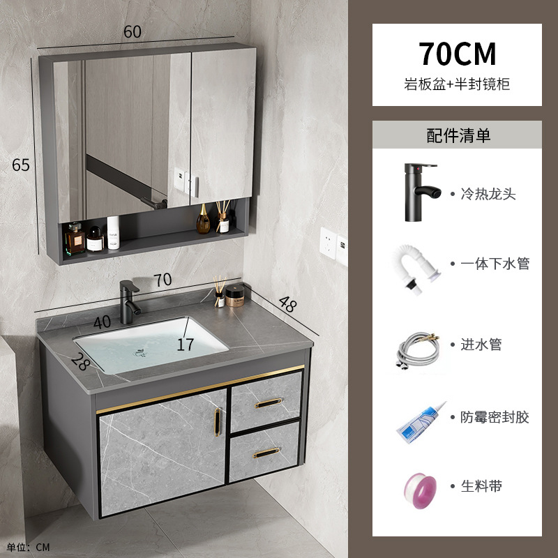 70 stone plate basin + half sealed mirror cabinet