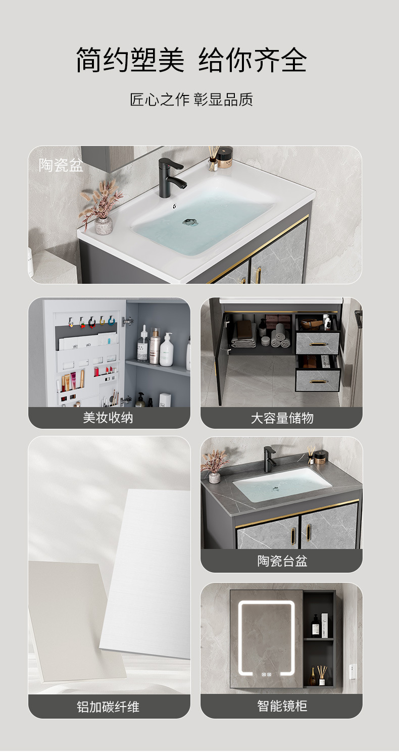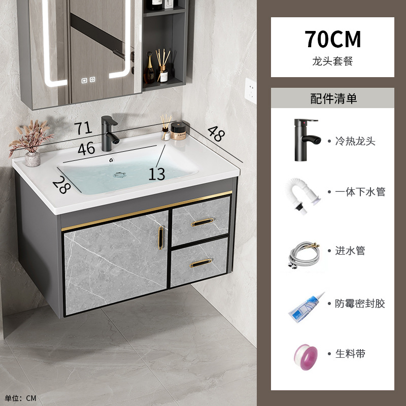 70 stone plate basin + half sealed smart mirror cabinet