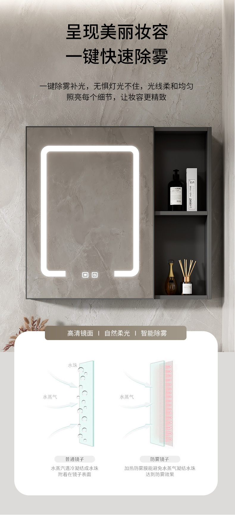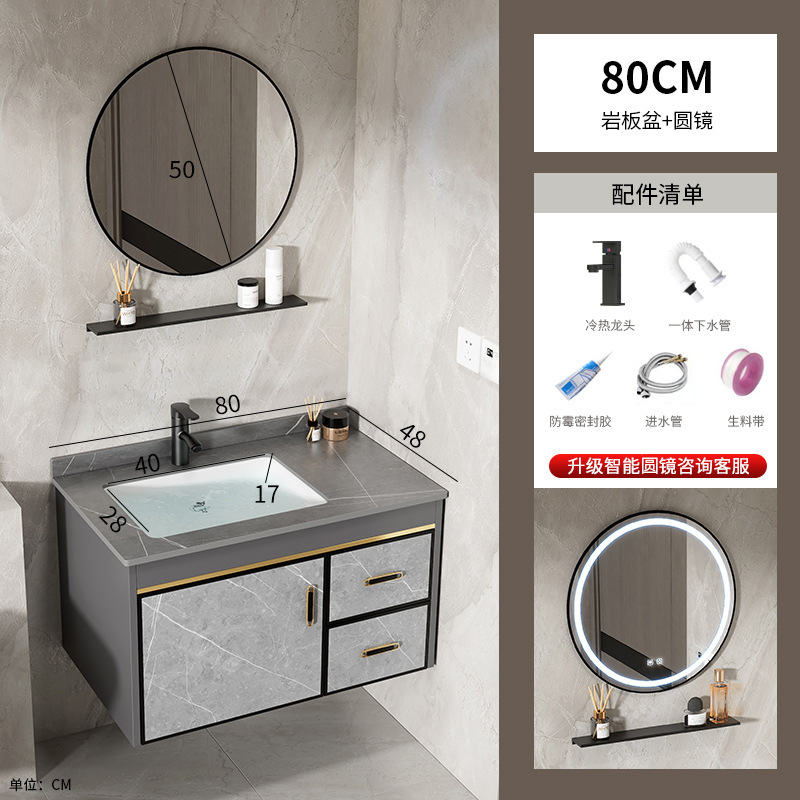80 stone plate basin + half sealed smart mirror cabinet