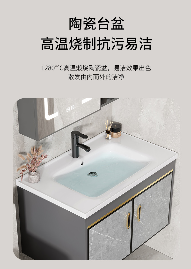 80 ceramic basin + half sealed smart mirror cabinet