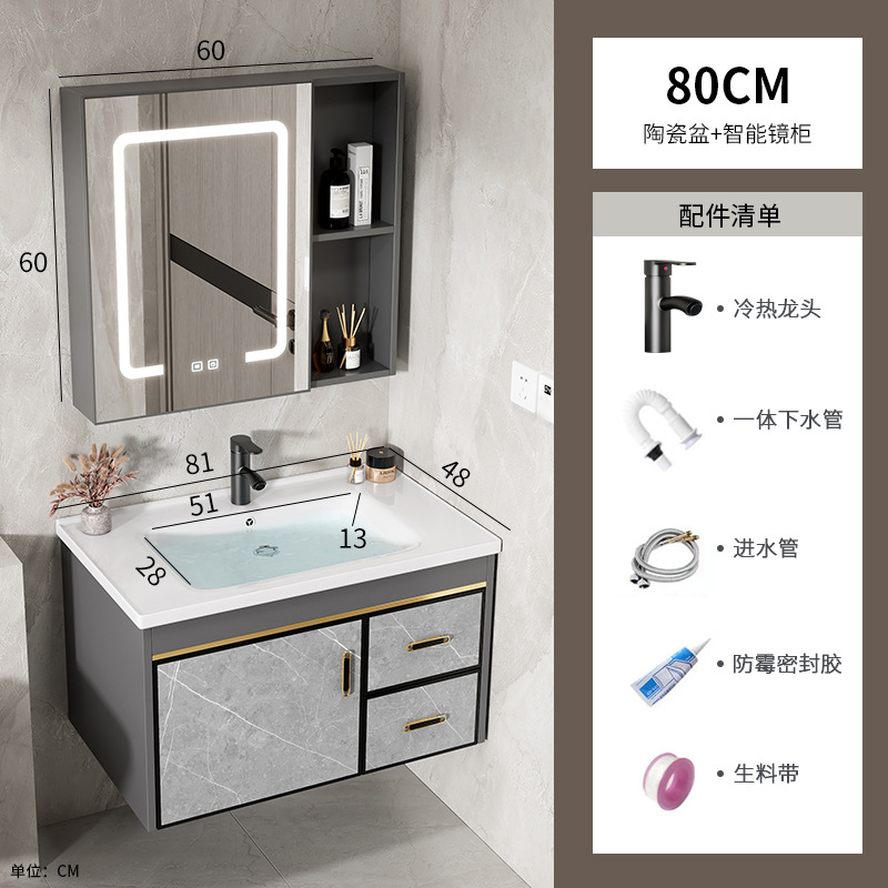 80 ceramic basin + smart mirror cabinet