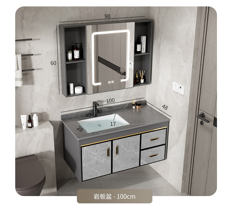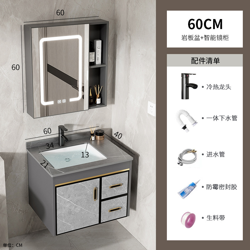 60 stone plate basin + half sealed mirror cabinet