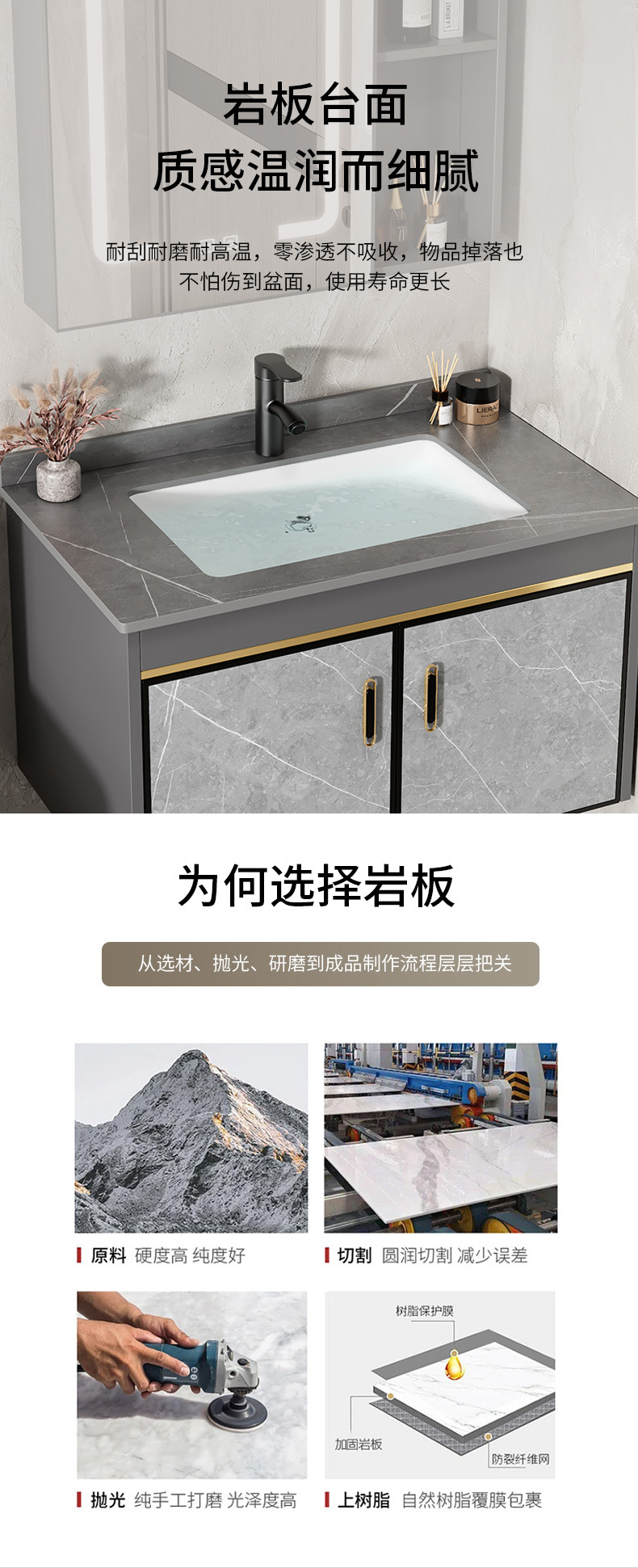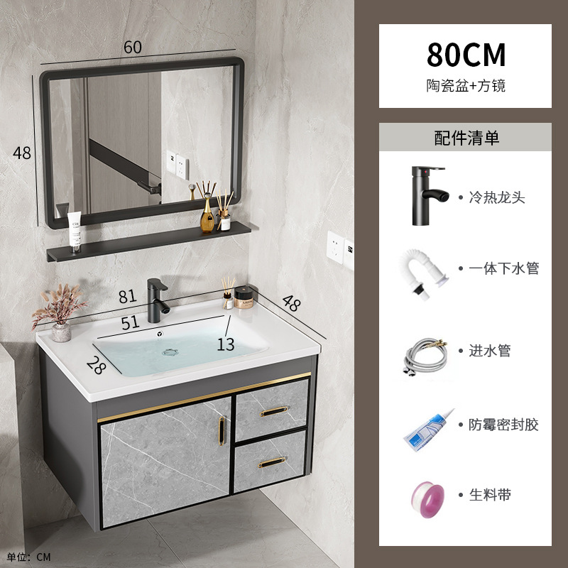 80 stone plate basin + half sealed mirror cabinet