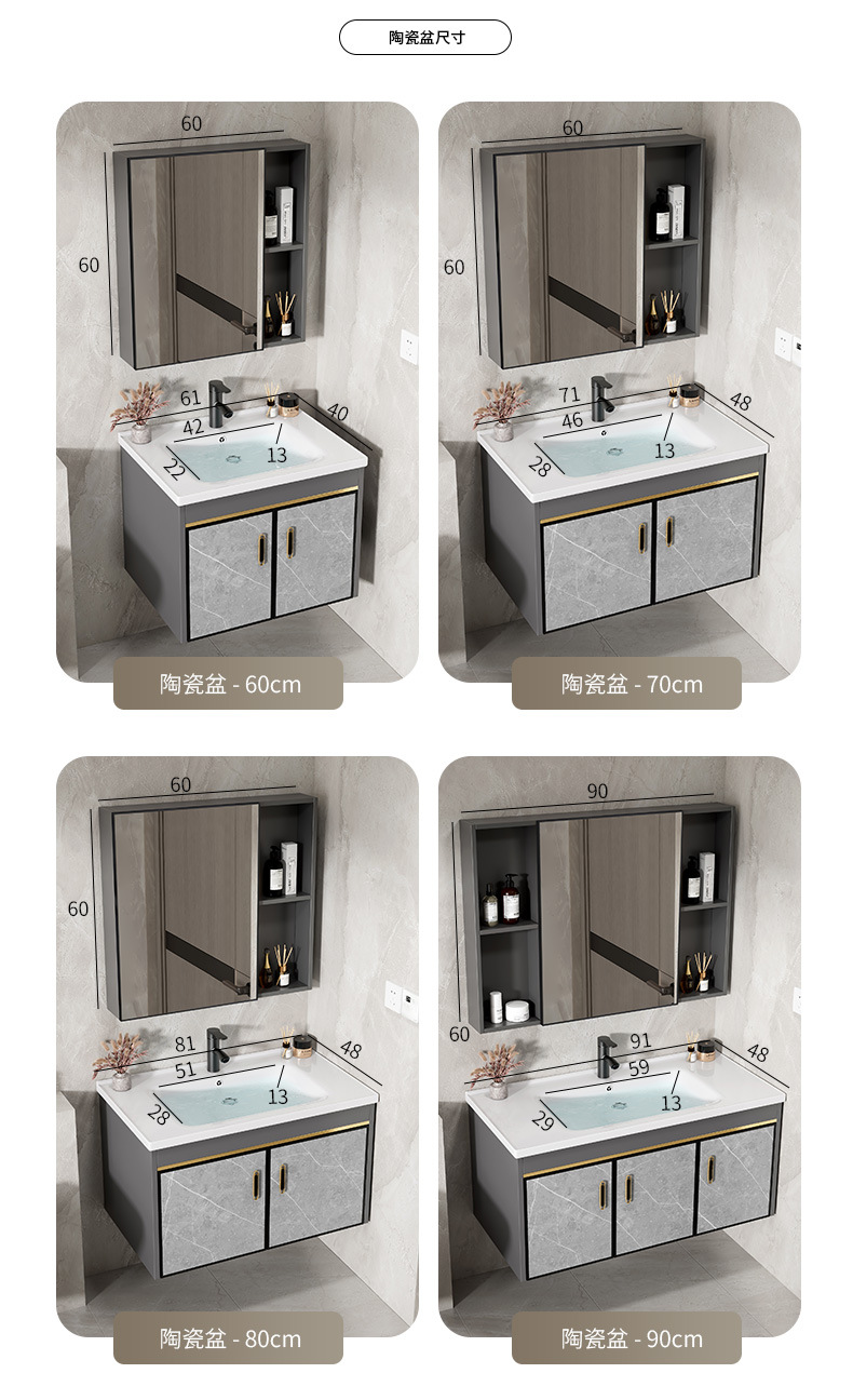 60 ceramic basin + half sealed mirror cabinet