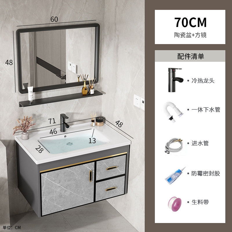70 ceramic basin + half sealed mirror cabinet