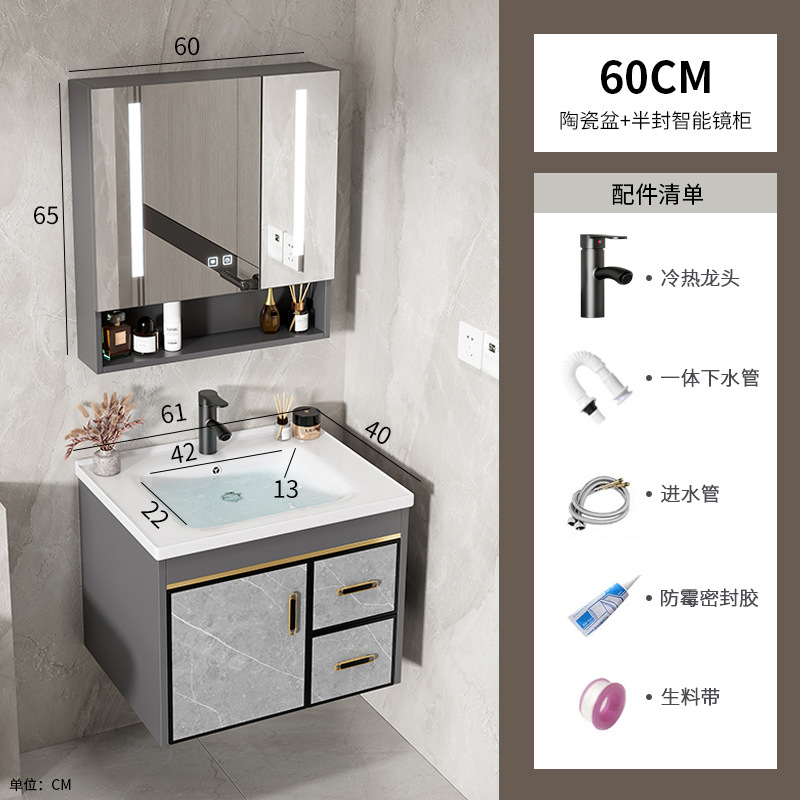 60 ceramic basin + half sealed smart mirror cabinet