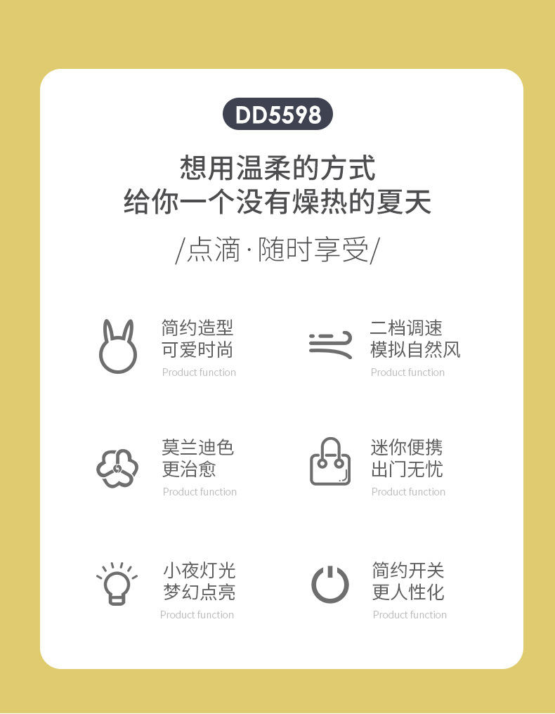 59-6 foldable fan (two adjustable gears + night light + sticker)