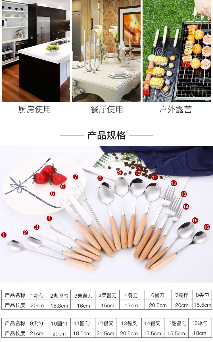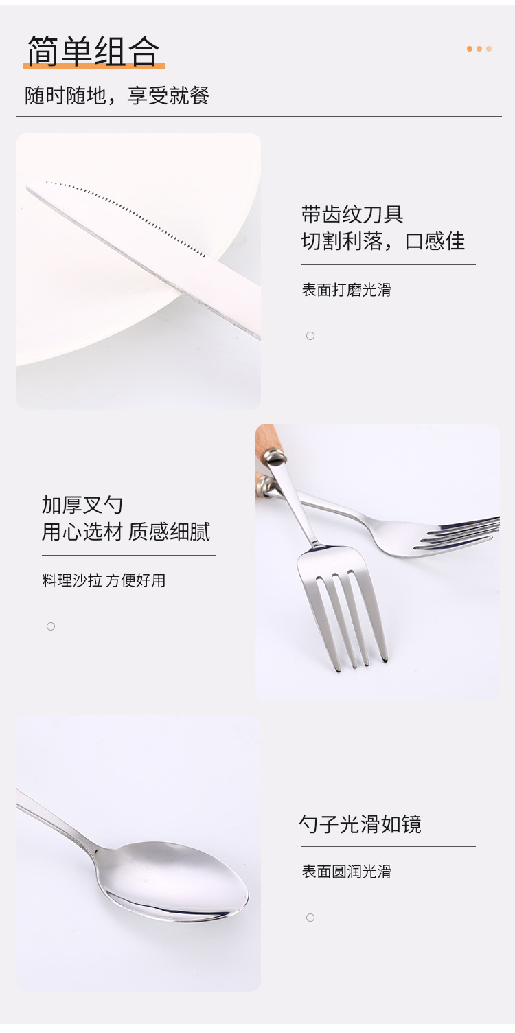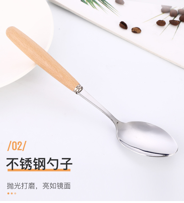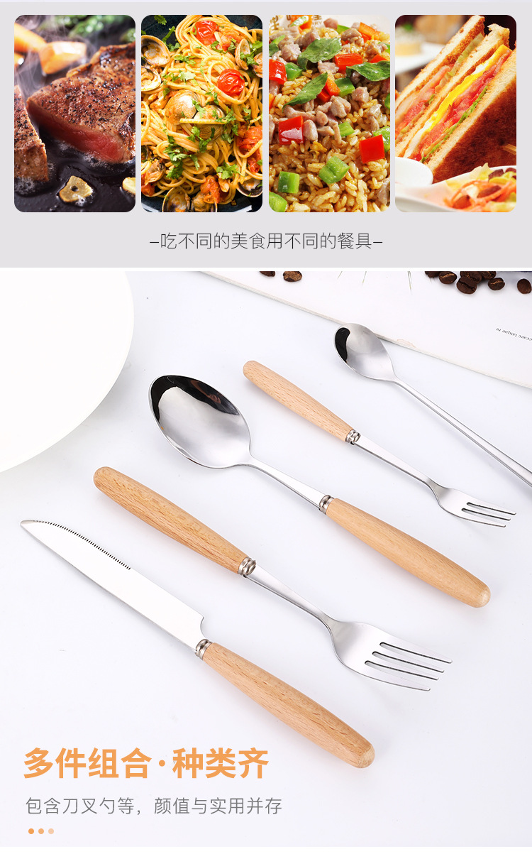 creative japanese style western tableware wooden handle stainless steel knife, fork and spoon hotel gift set coffee spoon long handle spoon wholesale