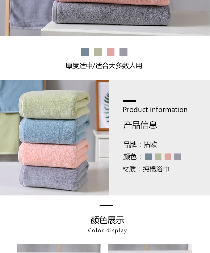 factory direct sales tuoou textile plain pure cotton bath towel customizable logo professional custom soft and comfortable towel