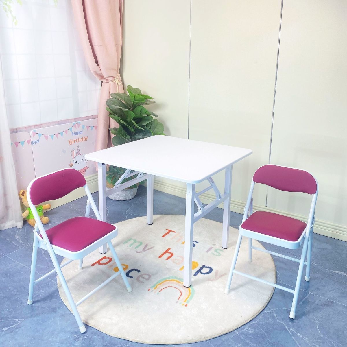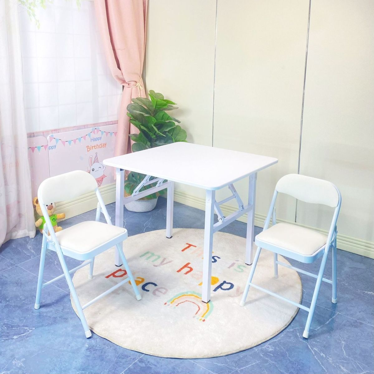 children's colorful table and chair desk learning dining computer desk white table small apartment simple folding storage home