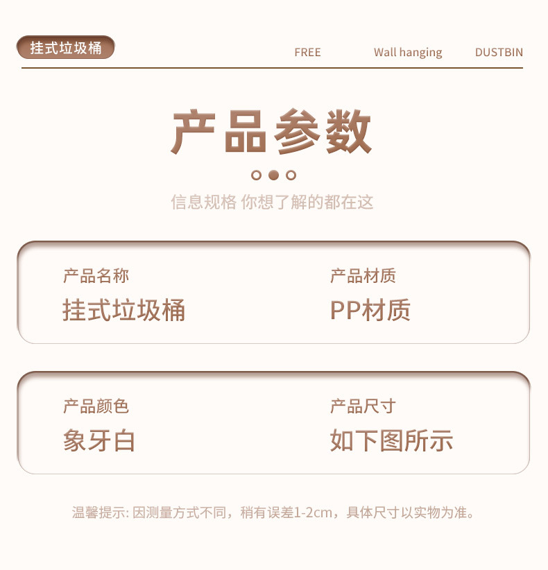 cream white wall-mounted trash can [large size]]