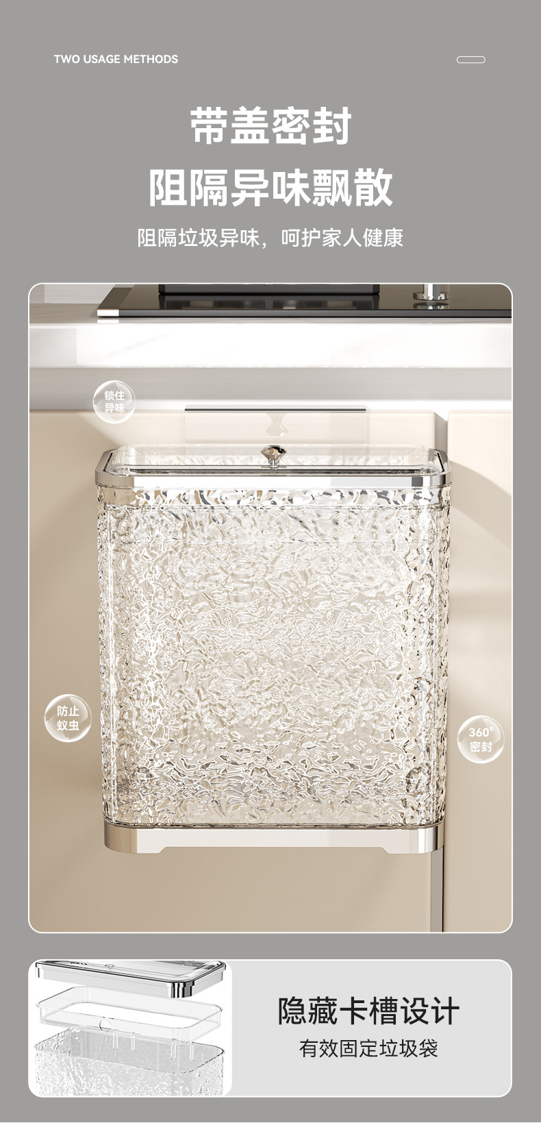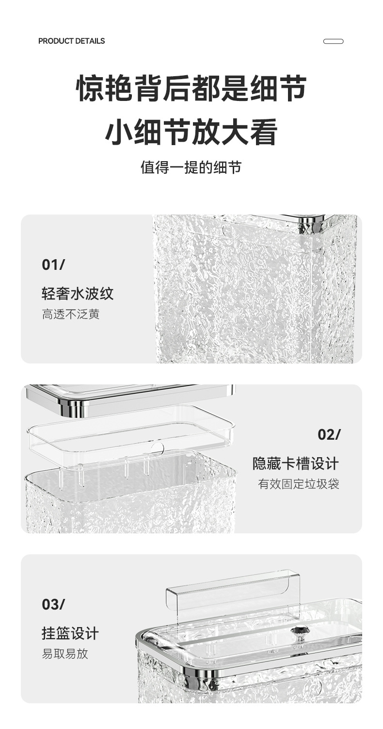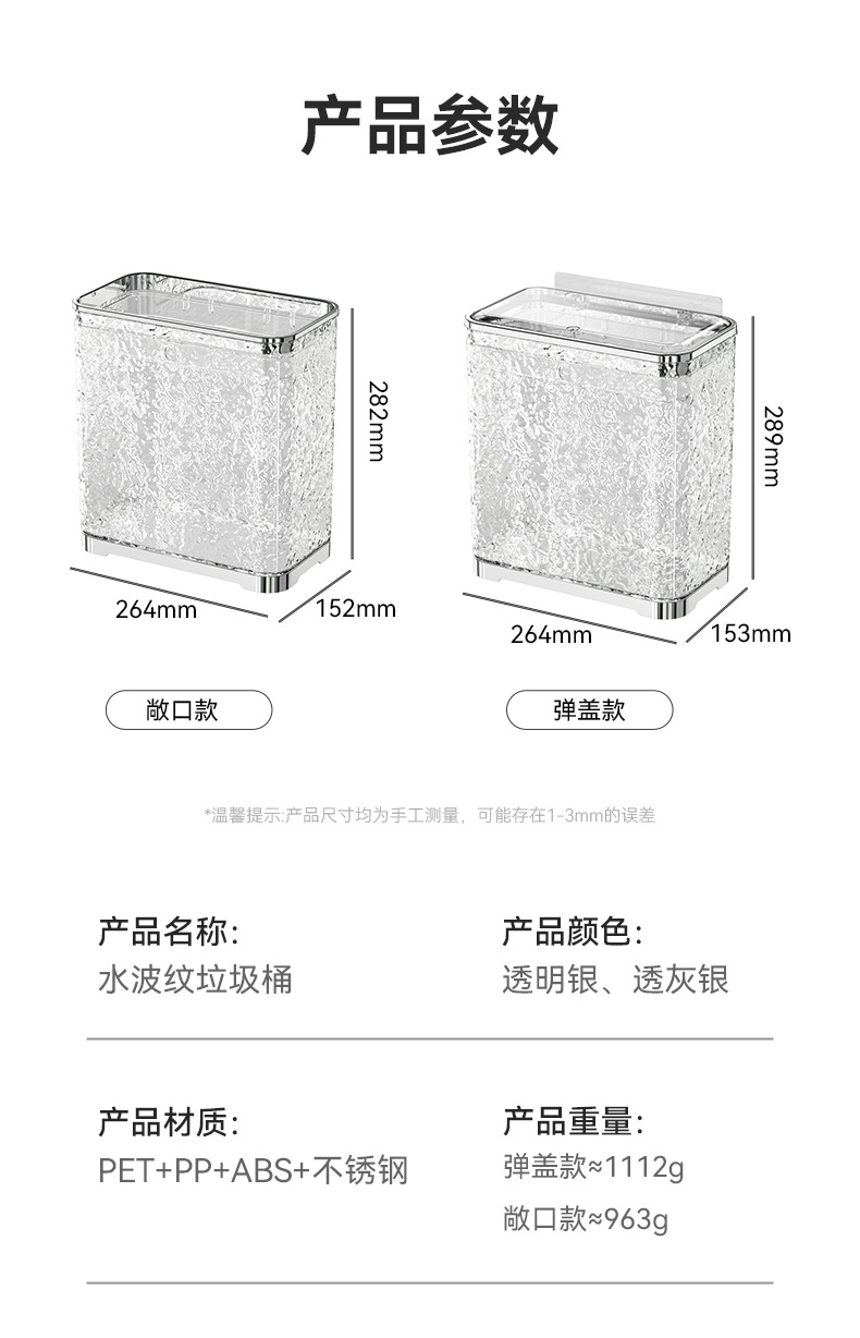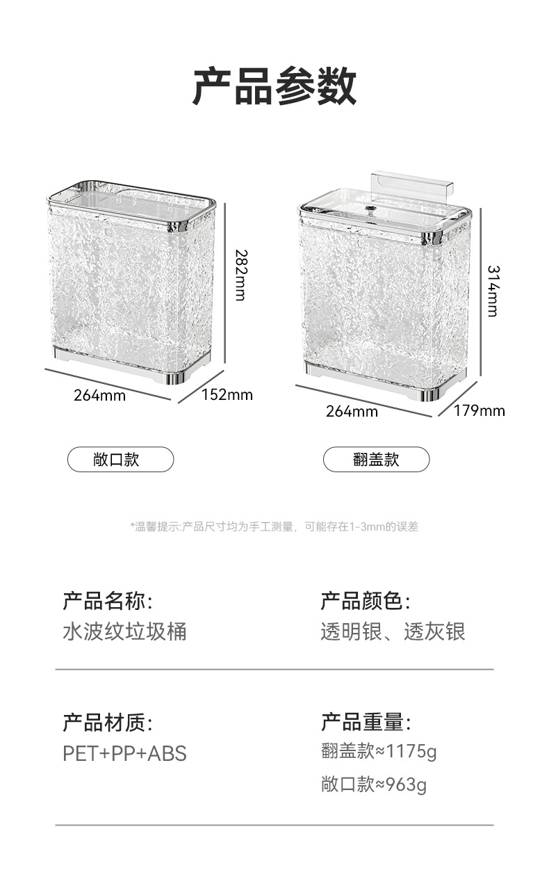 water ripple trash can-flip-transparent silver gray