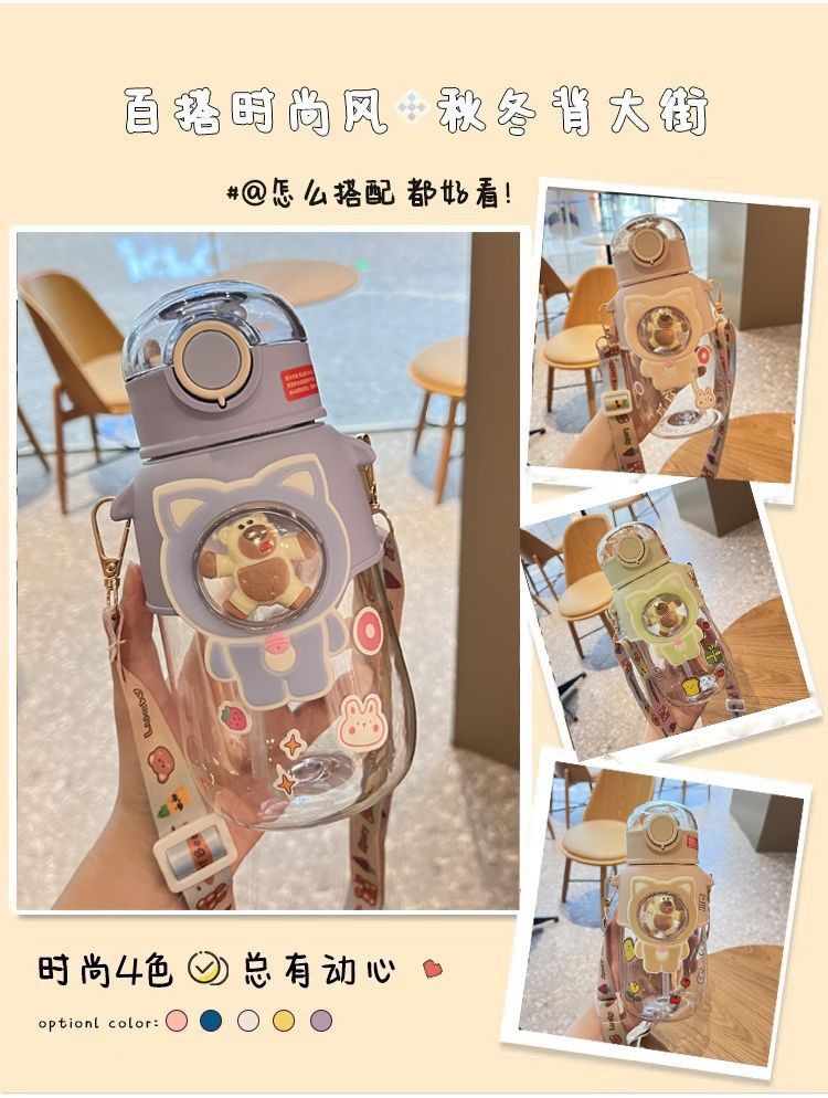 new fun doll plastic cup children cute straw cup summer portable large capacity girls straw cup