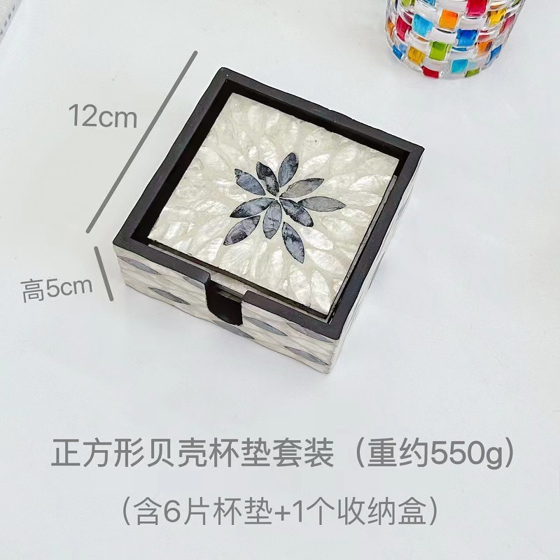 white shell round coasters suits (6 pieces +1 storage box)
