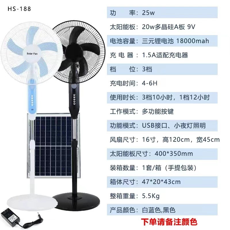 16-inch solar floor fan-188 (black/blue)
