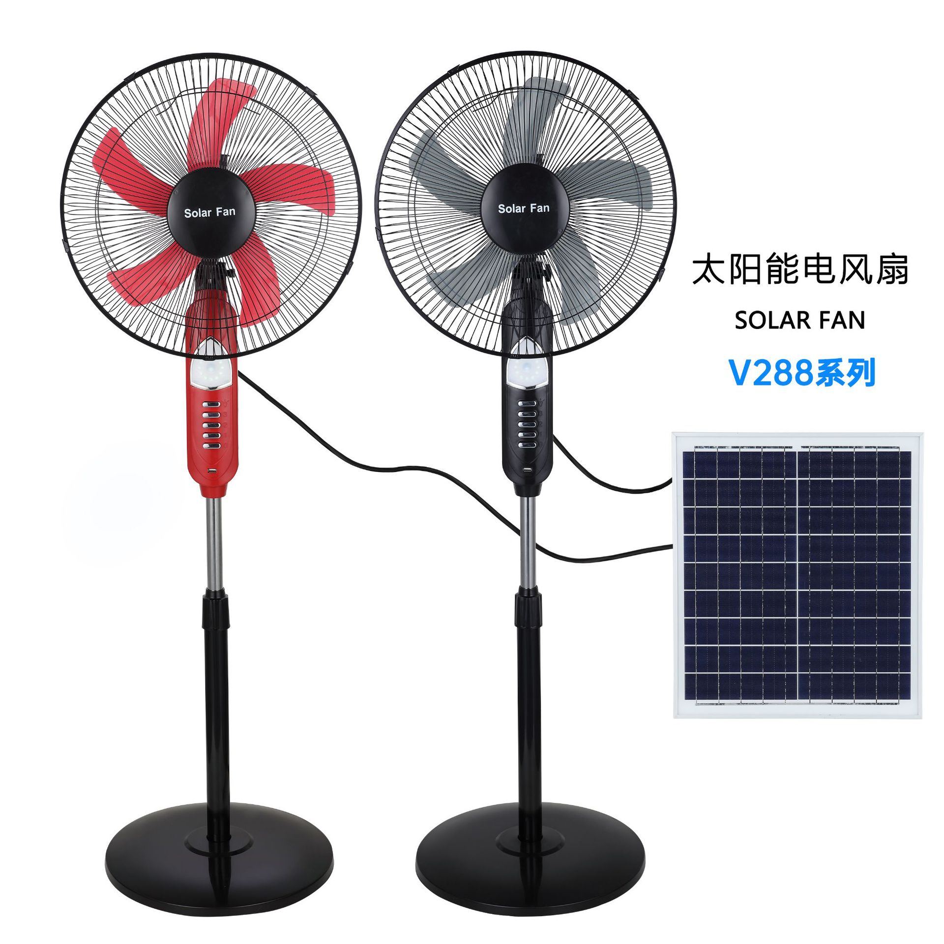 16-inch solar floor fan-288 (black/red)
