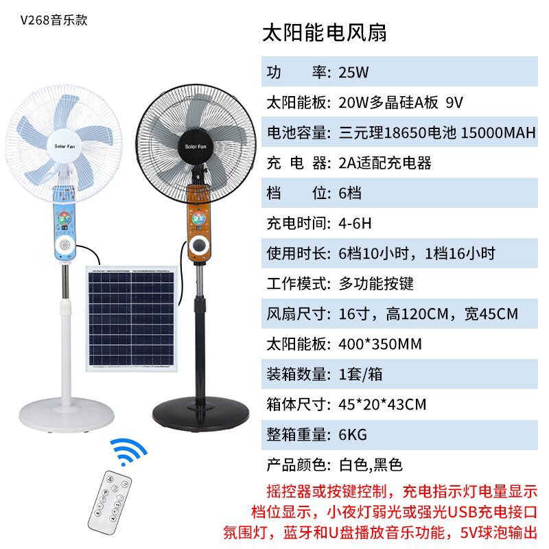 16-inch solar music floor fan-v268 (black/blue)