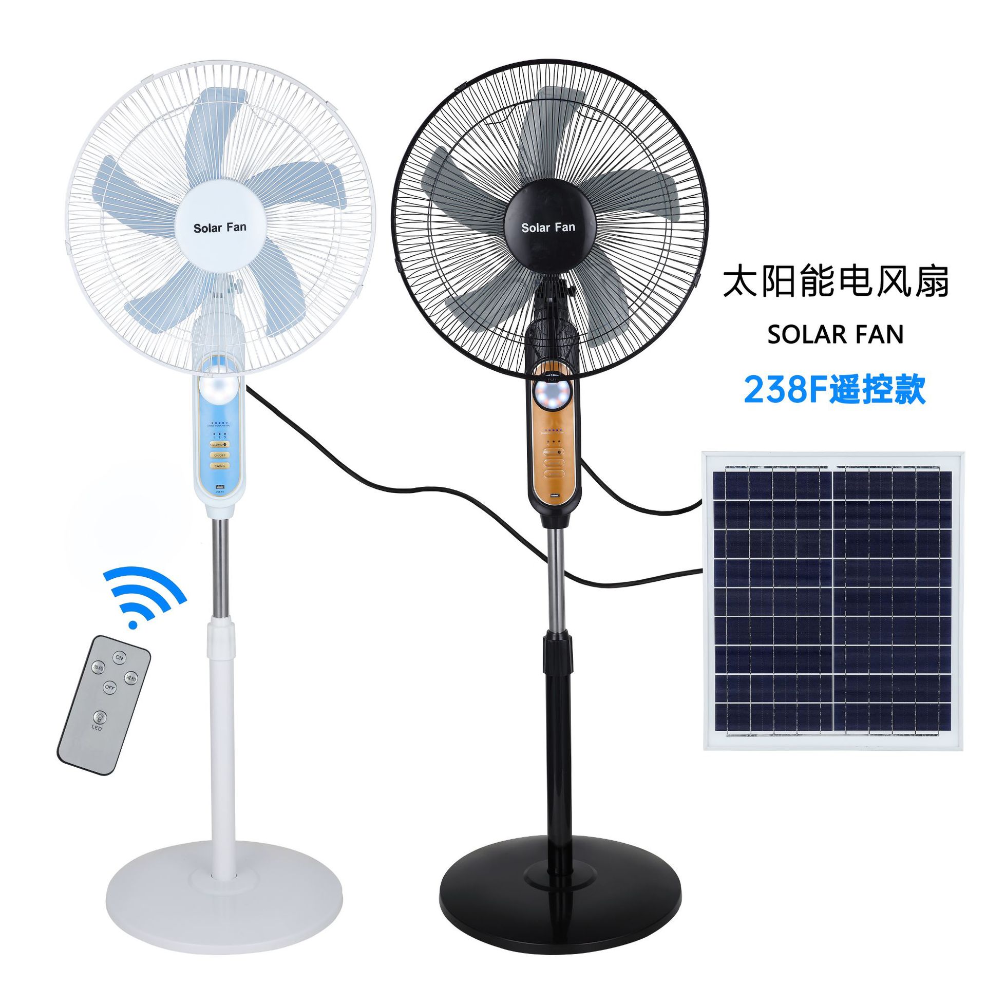 16-inch solar floor fan-238f (black/blue)
