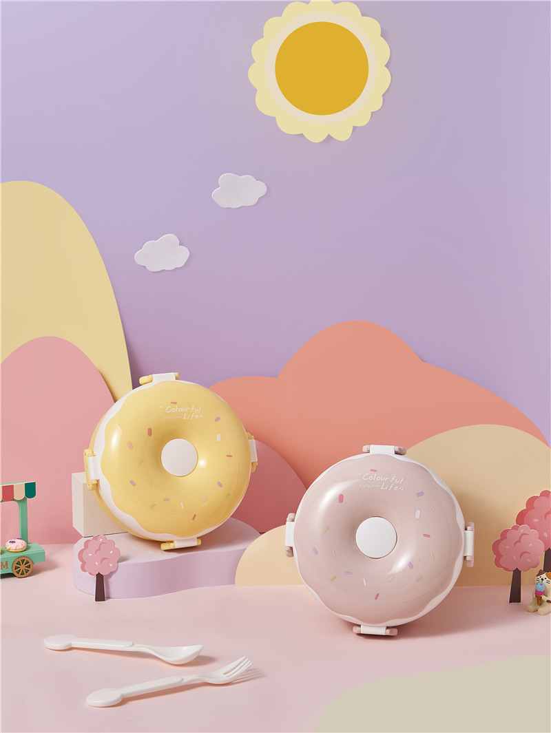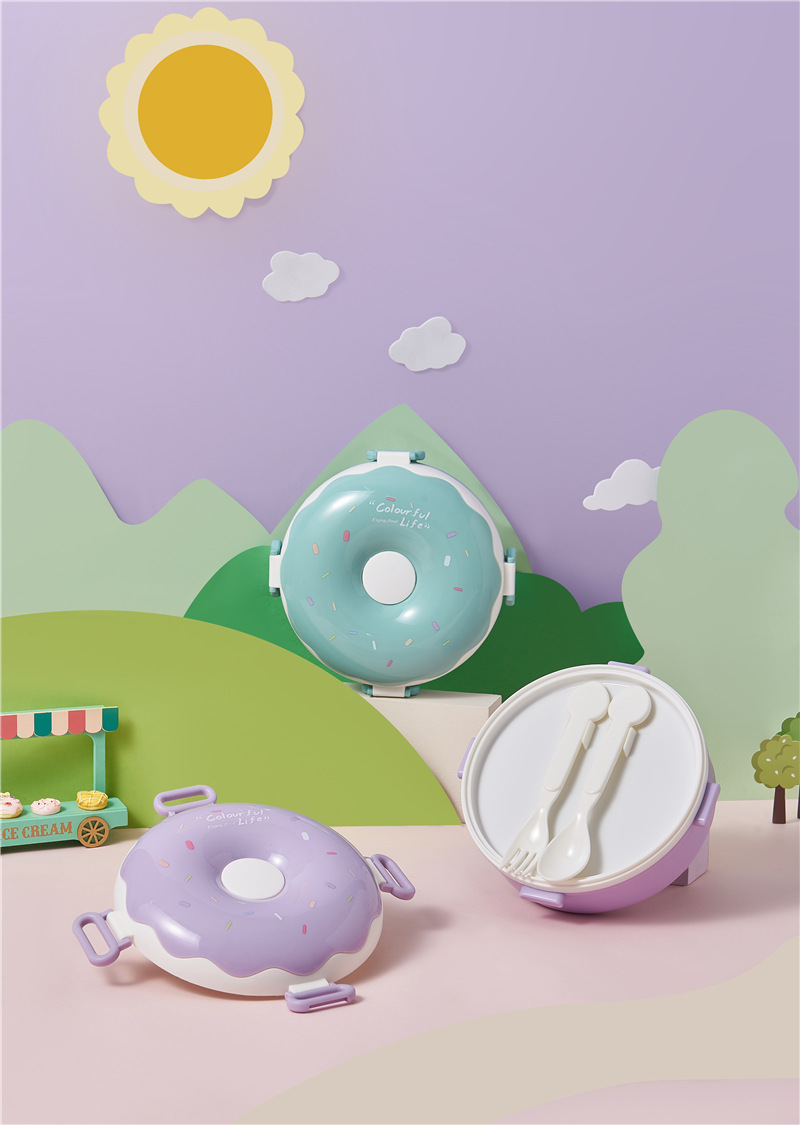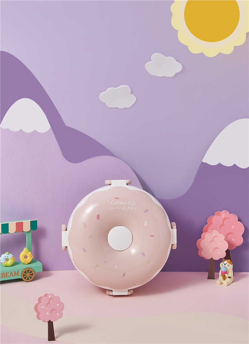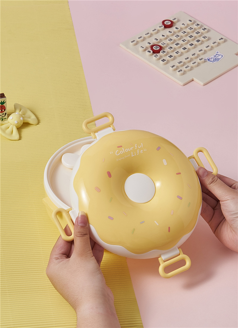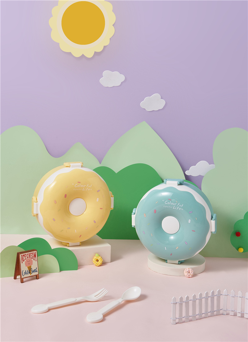 donut new children portable lunch box creative frame lunch box with lid containing spoon fork cute girl lunch box