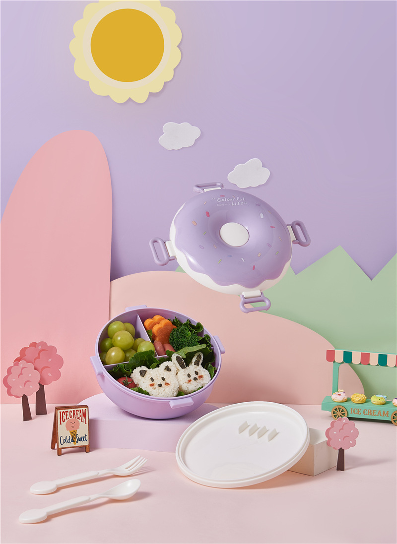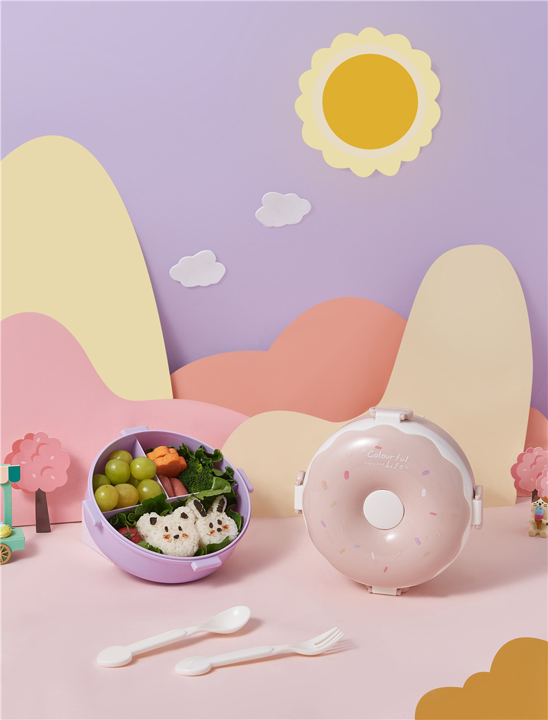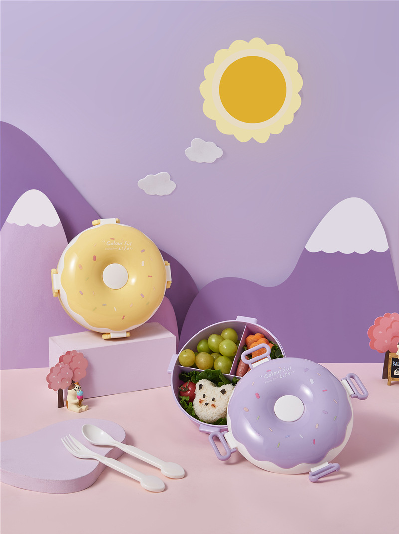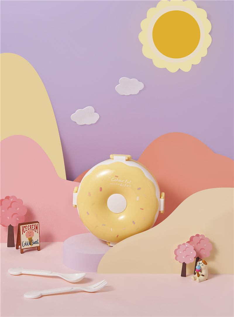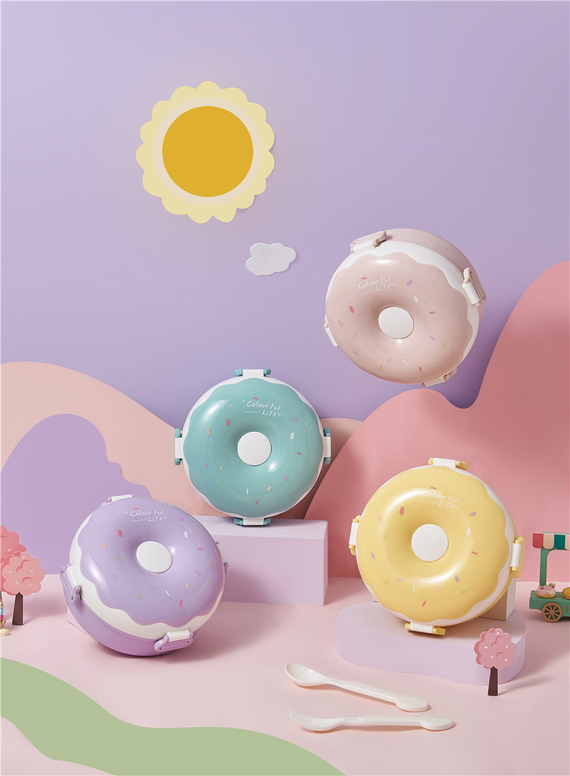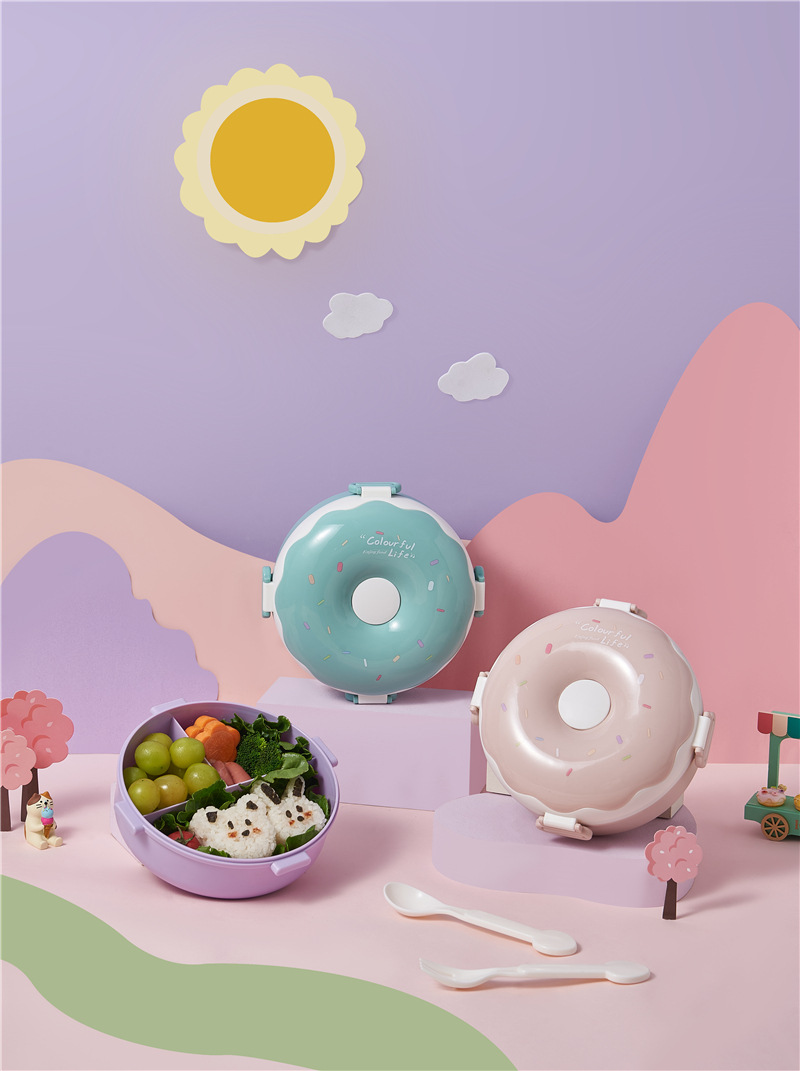 donut new children portable lunch box creative frame lunch box with lid containing spoon fork cute girl lunch box