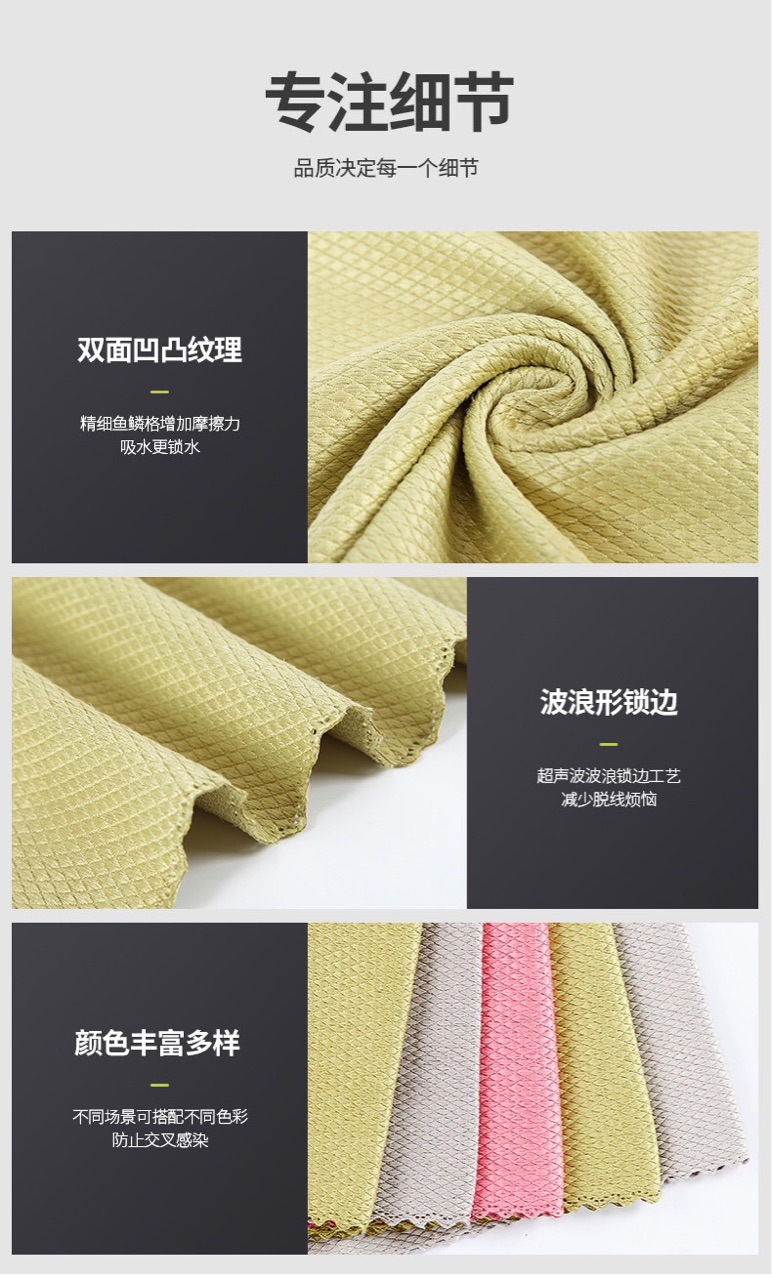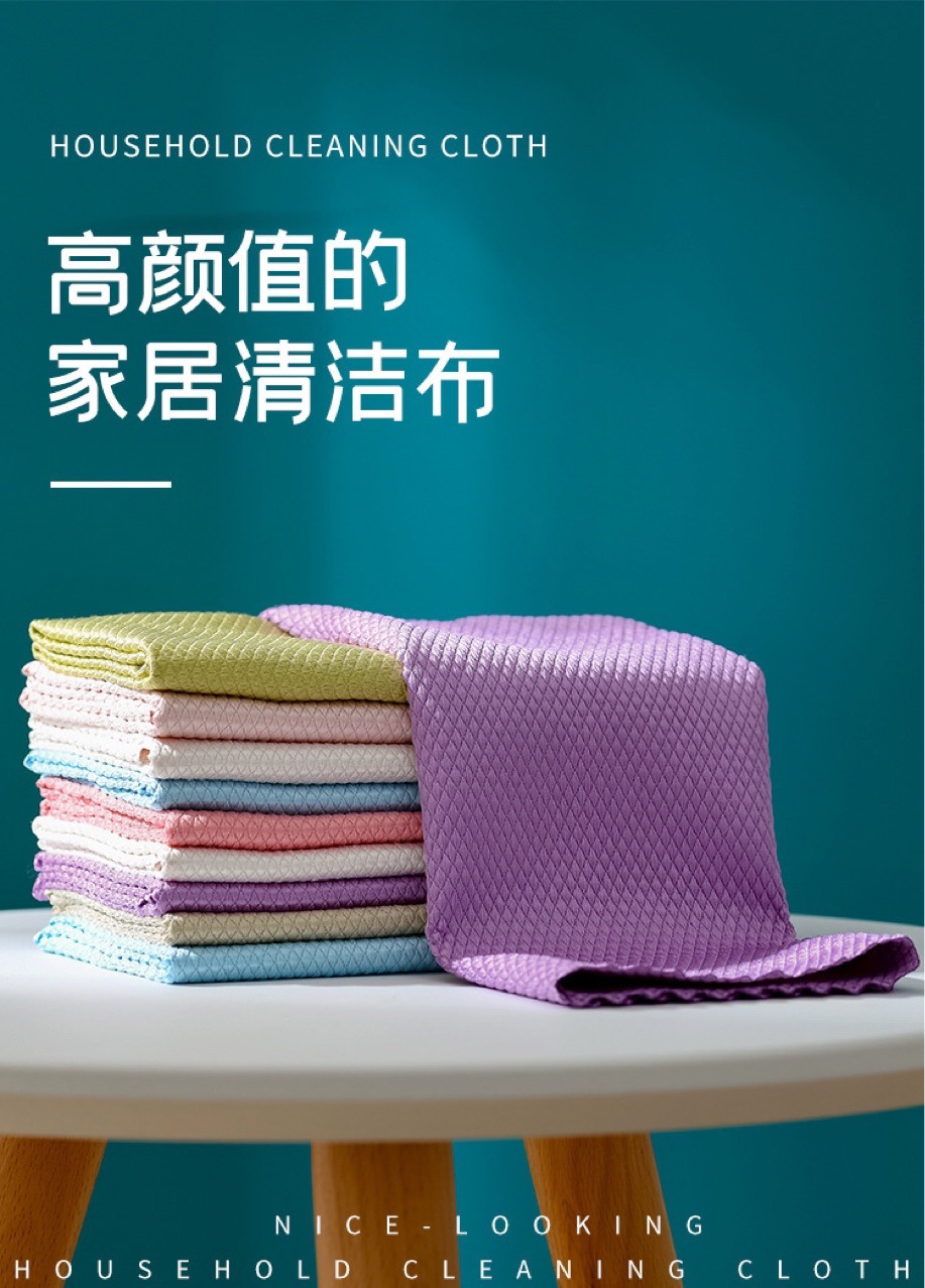 This is a household cleaning cloth that can be used to wipe glass and mirror surfaces. It is made of ultra-fine fiber material with a fish scale pattern design, which increases friction and has strong cleaning power. It has strong water absorption, no water marks, and does not shed hair. Are you still suffering from the blurry glass bright furniture, car side mirrors, and gray bumps? This super useful and high-looking fish scale glass cloth solves all your troubles!