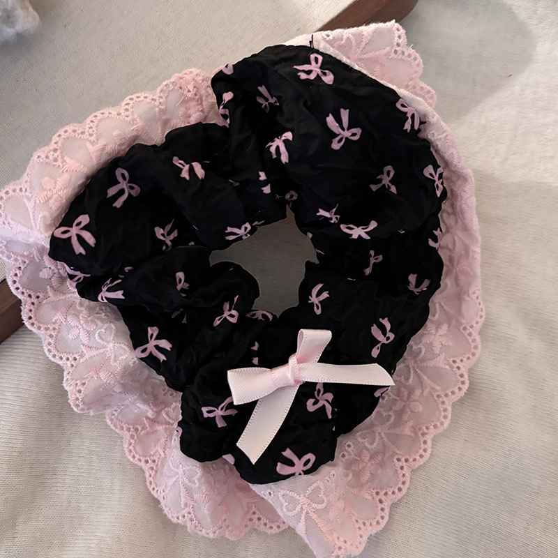 5# rose bowknot hair ring --- double black