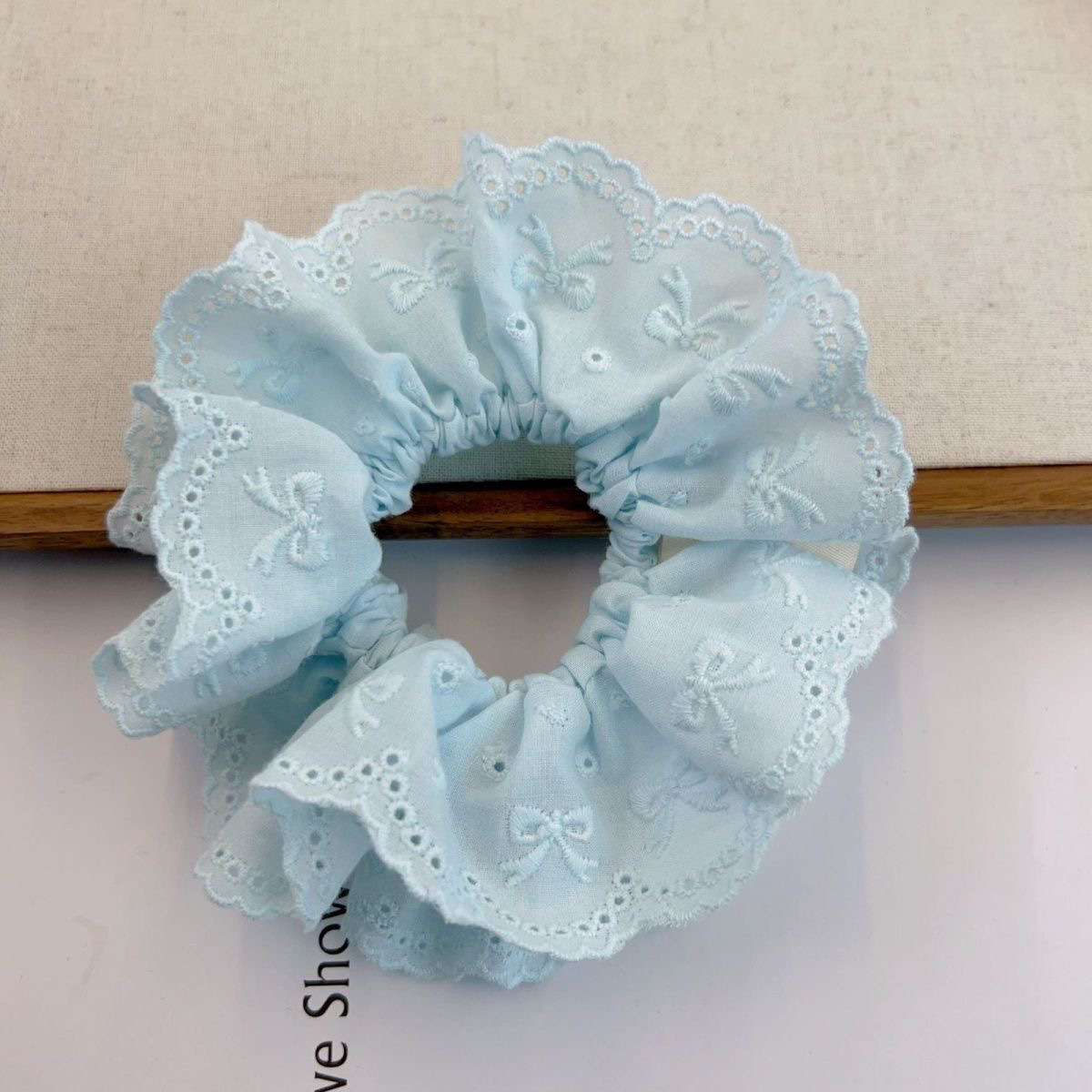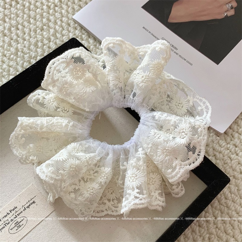 29# double-layer oversized lace hair ring-beige (15cm)