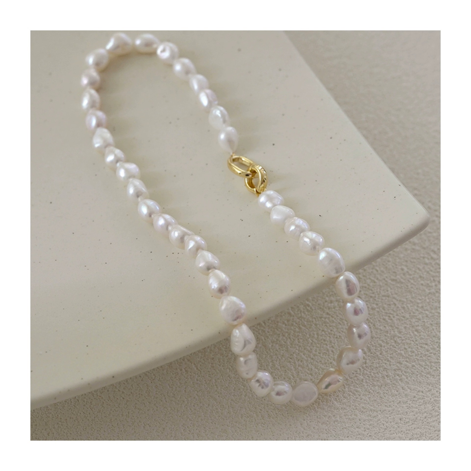 large baroque pearl necklace 45cm gold buckle