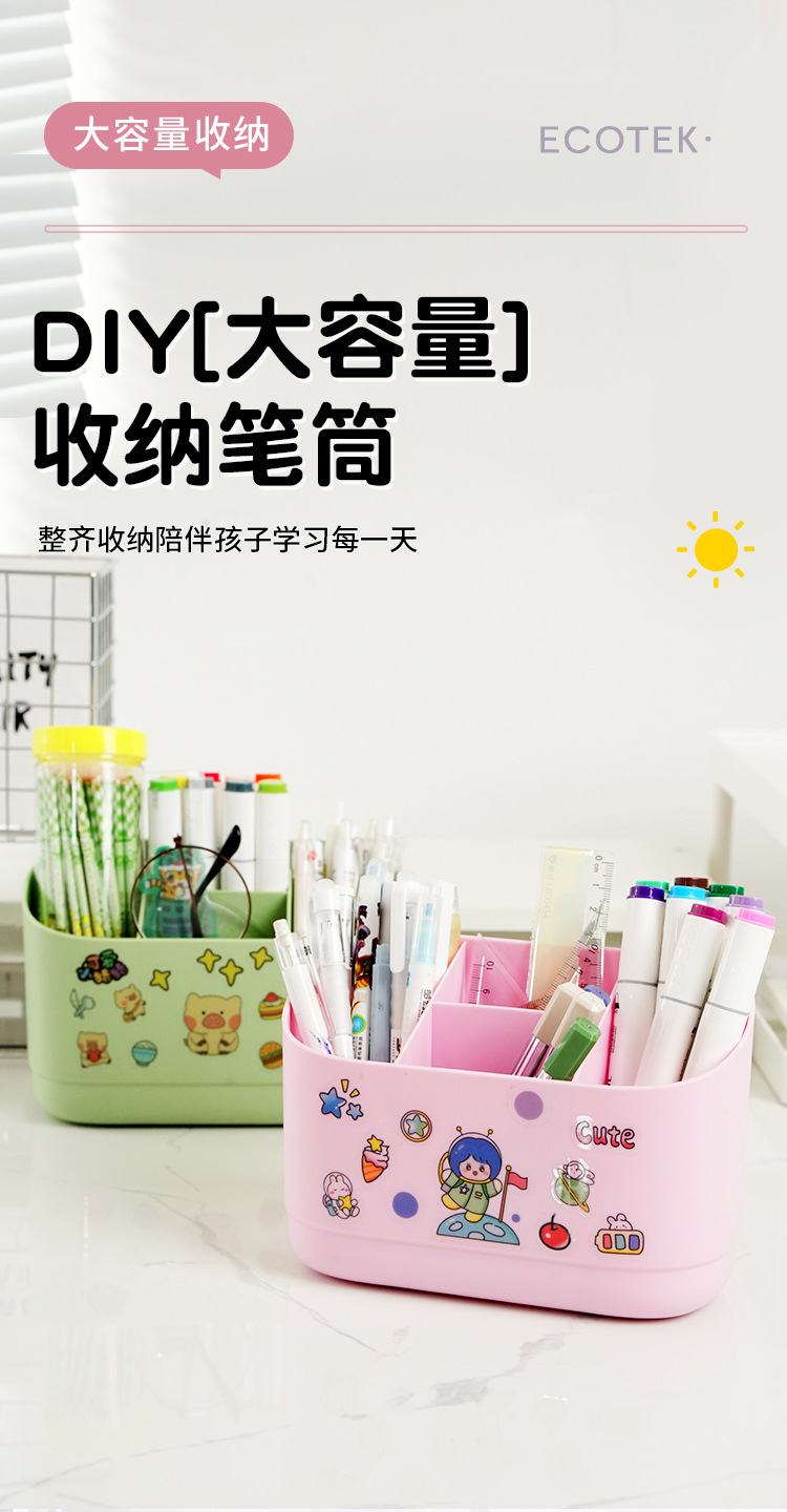 grid pen holder green (diy free stickers)