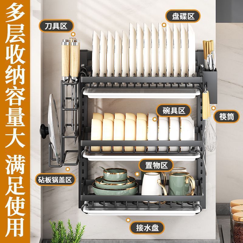 kitchen storage rack wall-mounted bowl rack knife rack chopsticks holder punch-free wall-mounted draining rack multi-functional storage rack multi-layer