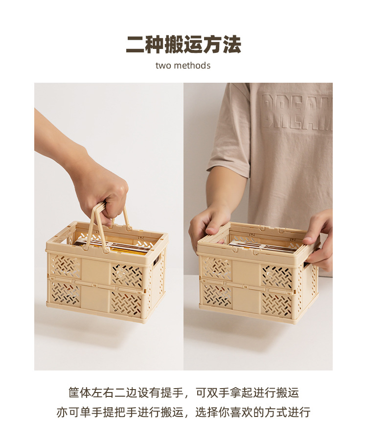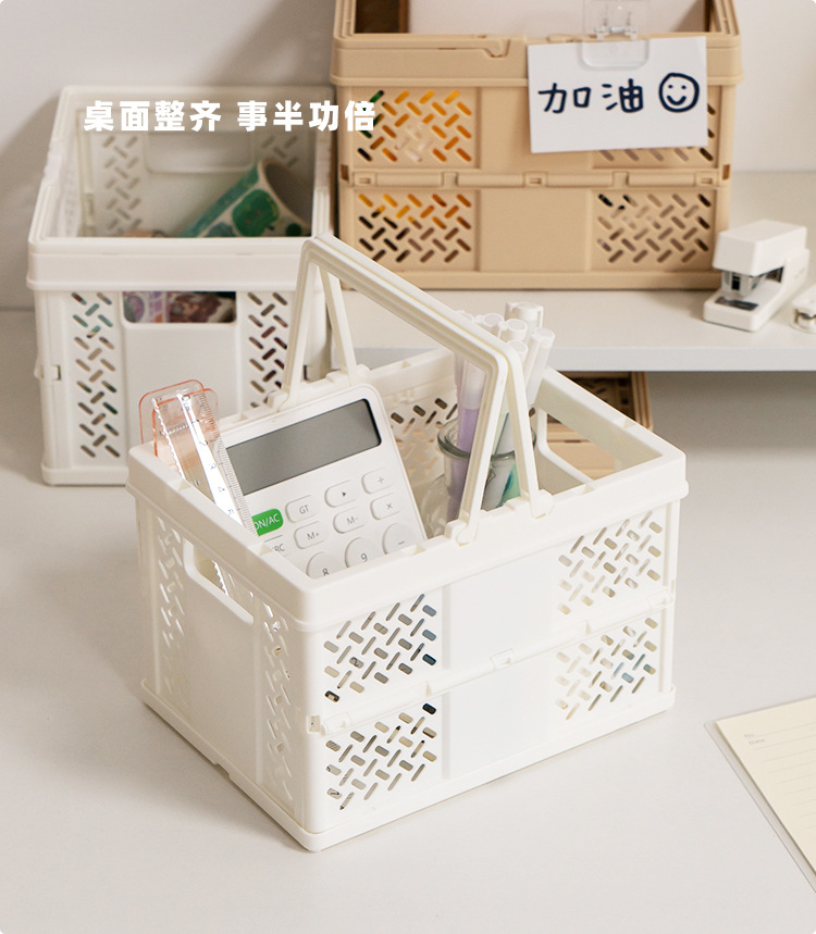 Creative solid color foldable desk snack storage basket with hollow handle, shopping storage basket, small picnic basket