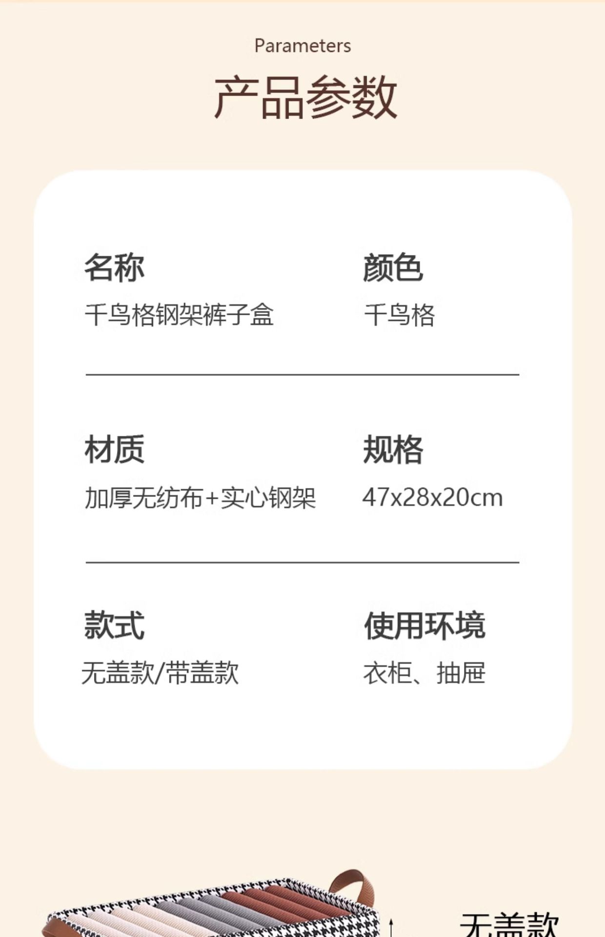 non-woven fabric without cover pp plate houndstooth (without steel frame) 40*28*20