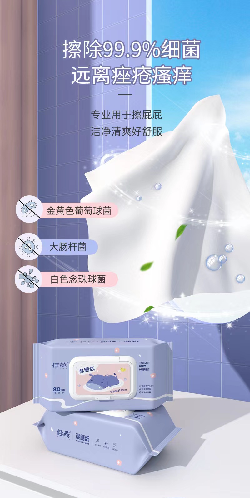 mini hippo wet toilet paper 13*18/80 pieces