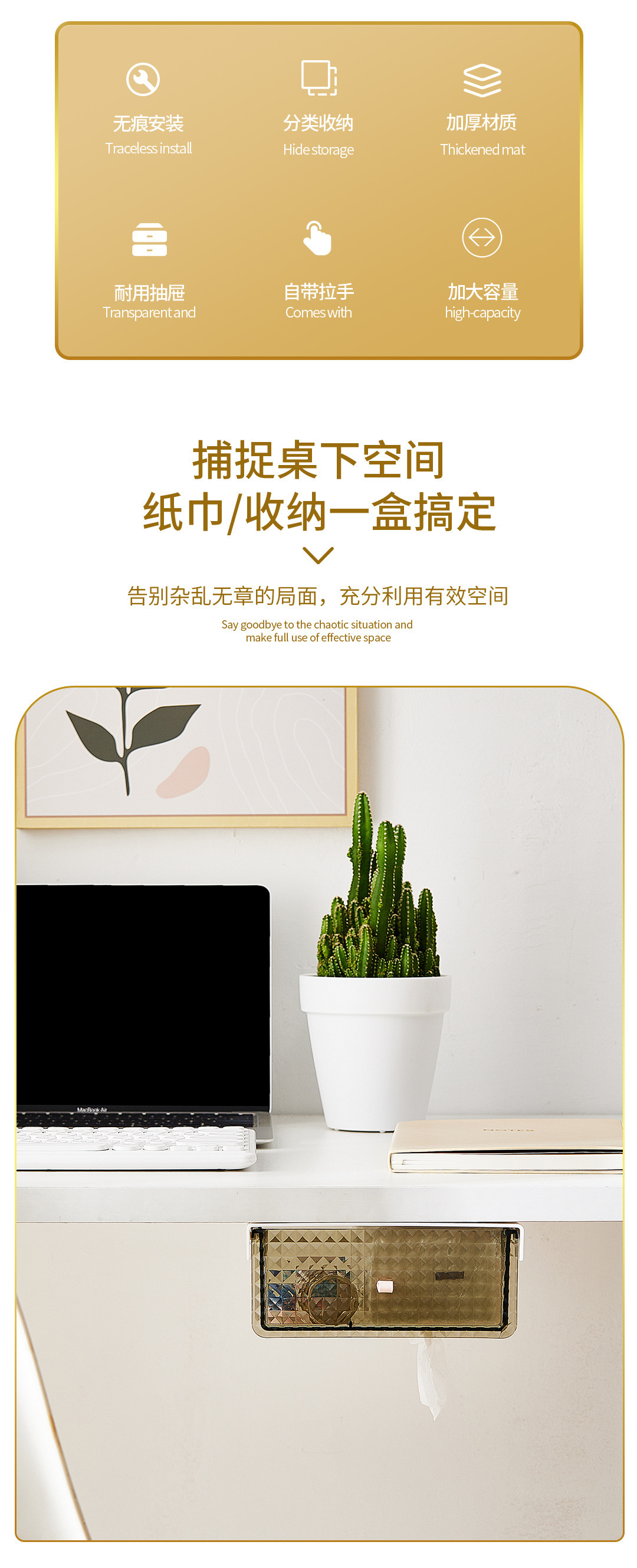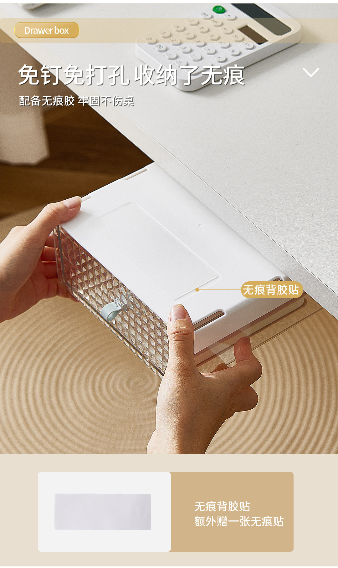 Recommended portable desk under-storage rack, invisible desk organization tool, no-drill drawer storage box¥6立即购买