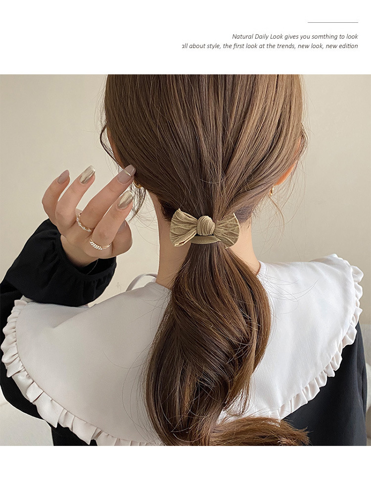 khaki bowknot hair ring 1 piece