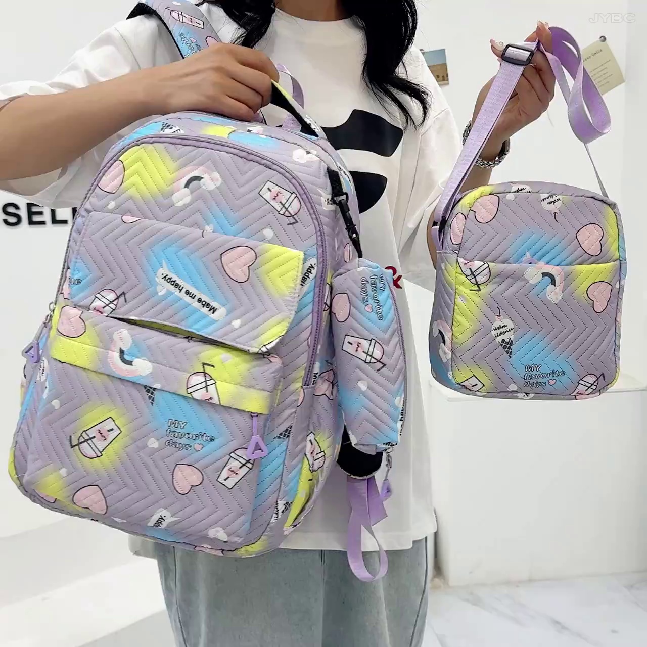 New Student Schoolbag Tee-Piece Set Fresh Sweet Style rge Capacity Bapa Cute Junior Bapa