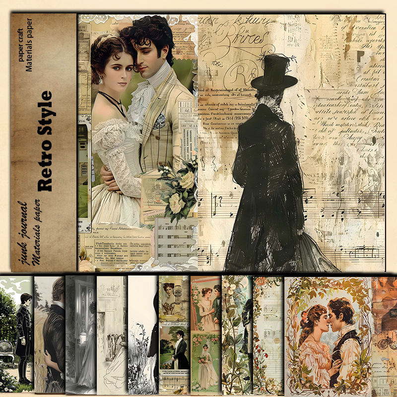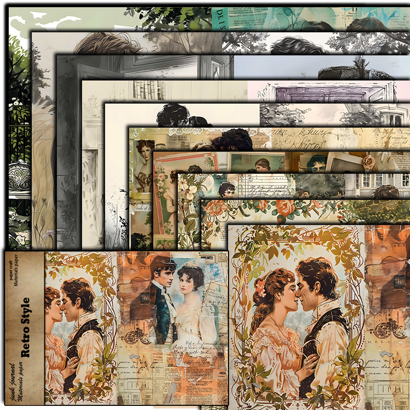 Retro 10 Pieces of Love at That Time Material Paper European and American Pace Style Pattern Decoration DIY