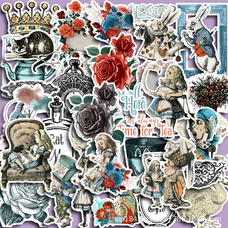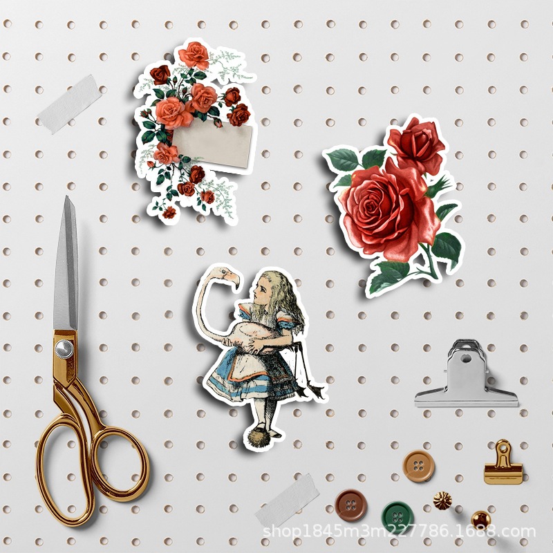 Grotesque Alice 36 Pieces Waterproof Stiers Gothic Style Nostalgic Rose Notebook Creative Stiers Mixed without Repetition