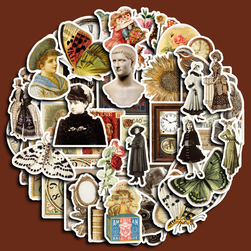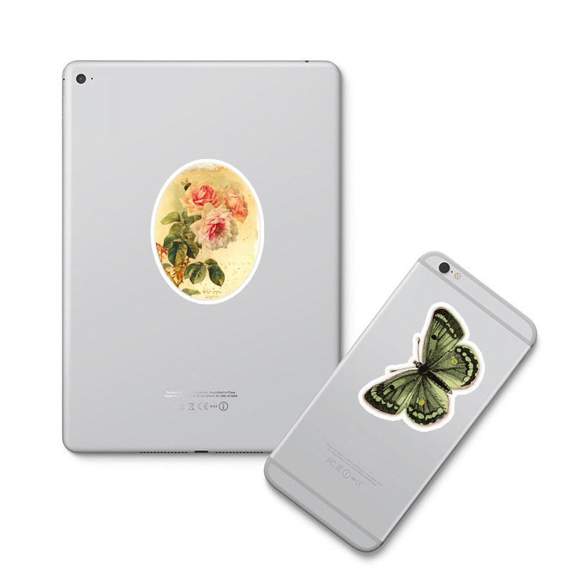 Retro Women's Diary 50 Pieces Journal Stiers Character Butterfly Distressed Pattern Phone Case