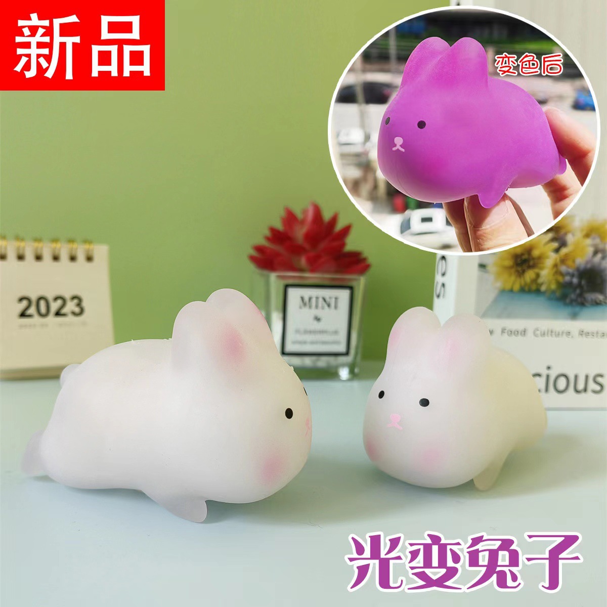 New Light-Changing Rabbit Squeezing Toy Decompression Rabbit New Exotic Cute Pet Jade Hare Color-Changing Rabbit Factory Wholesale