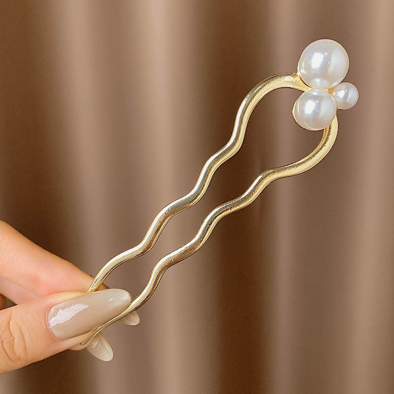11# golden three pearl wave hairpin