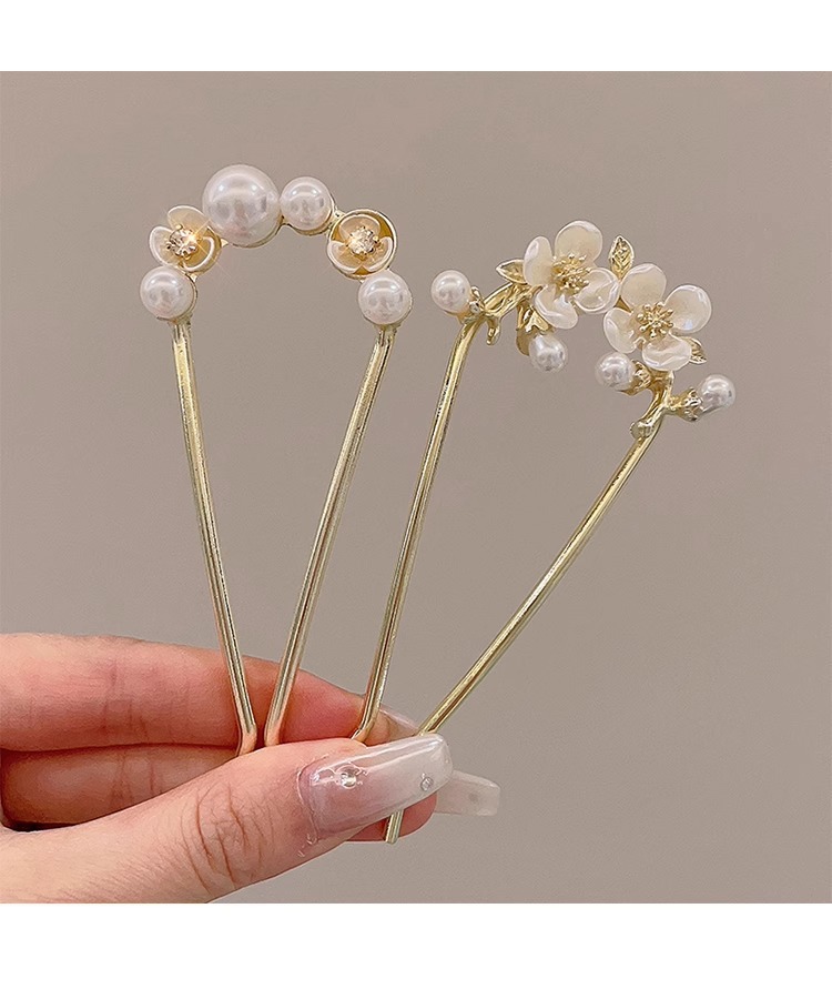 10# gold pearl flower u-shaped hairpin