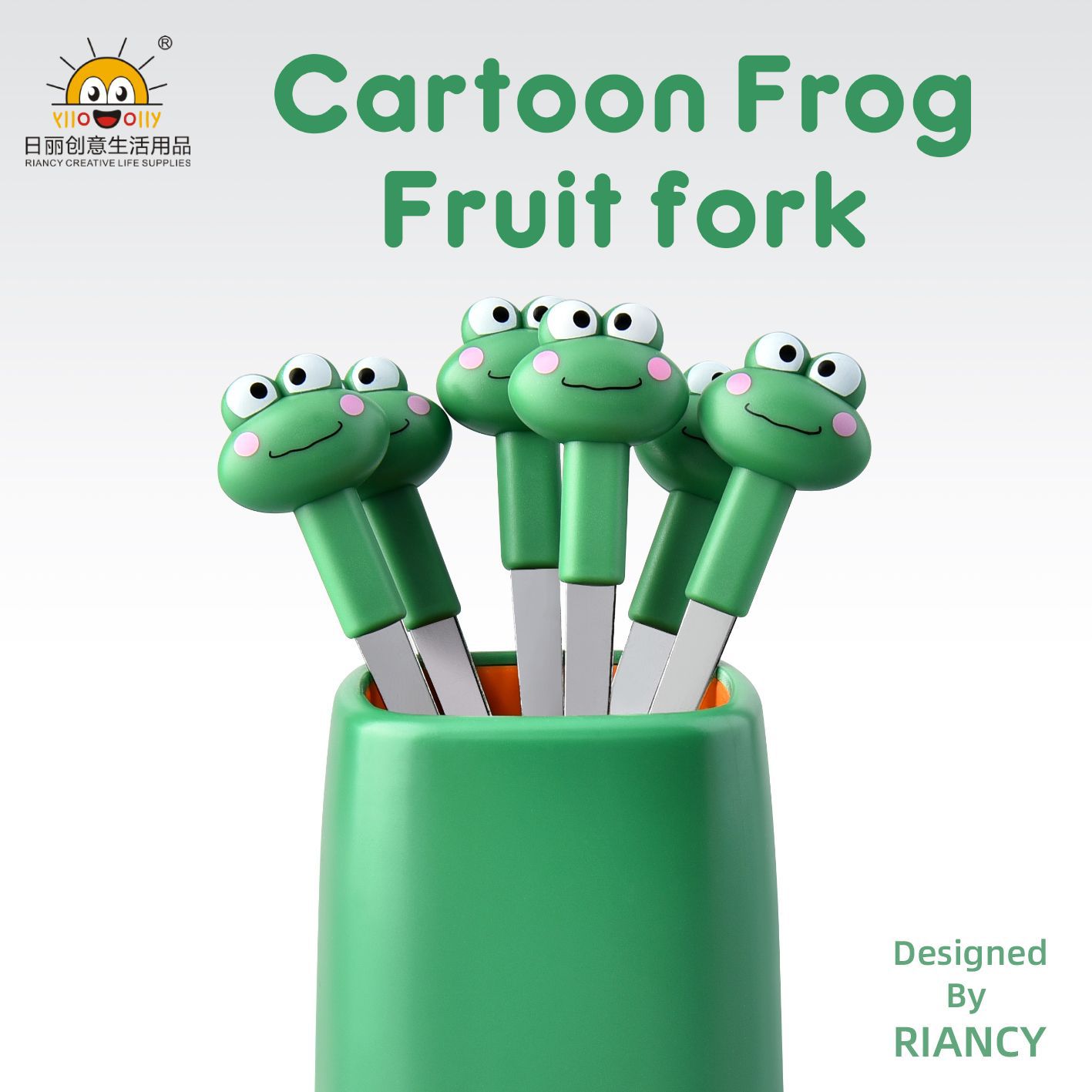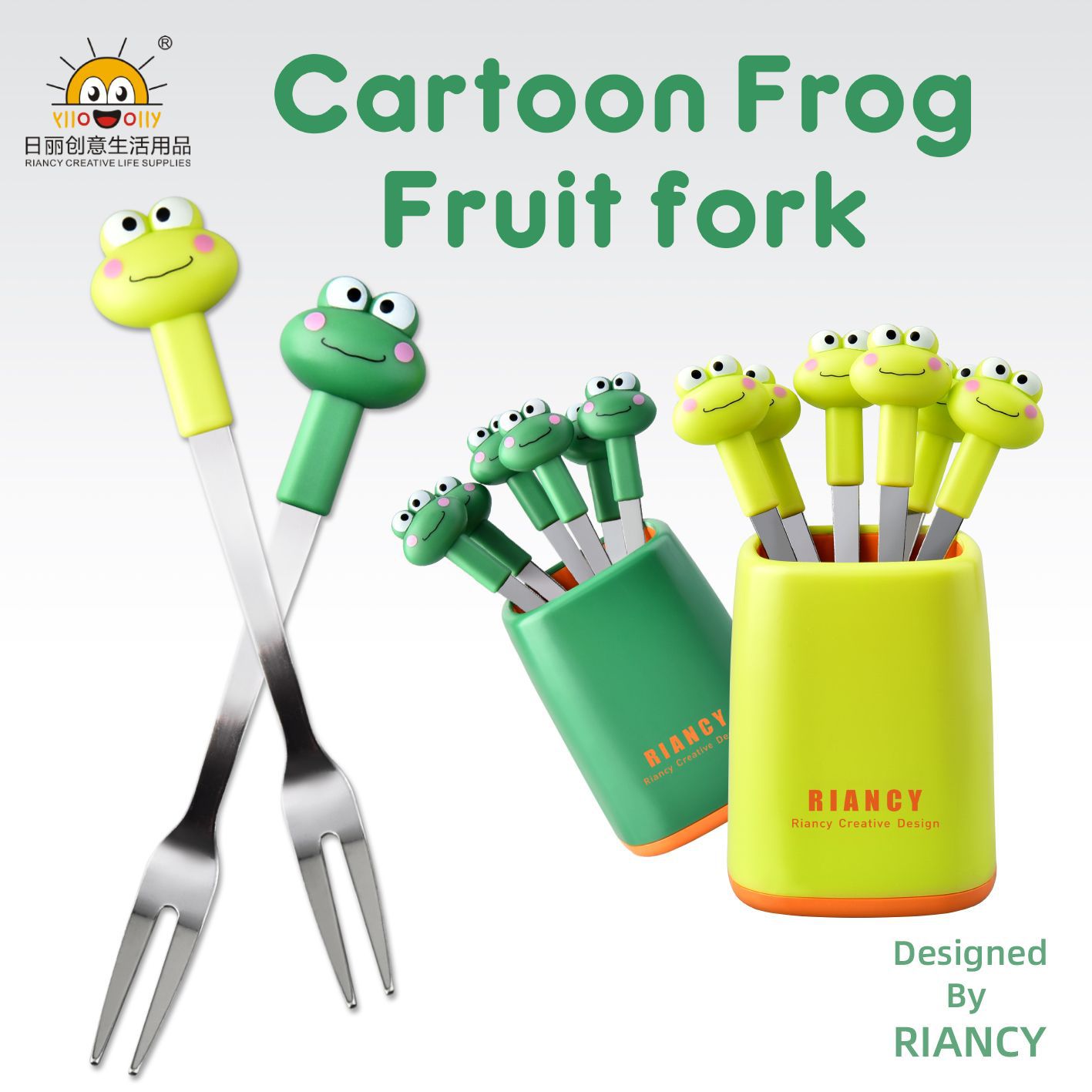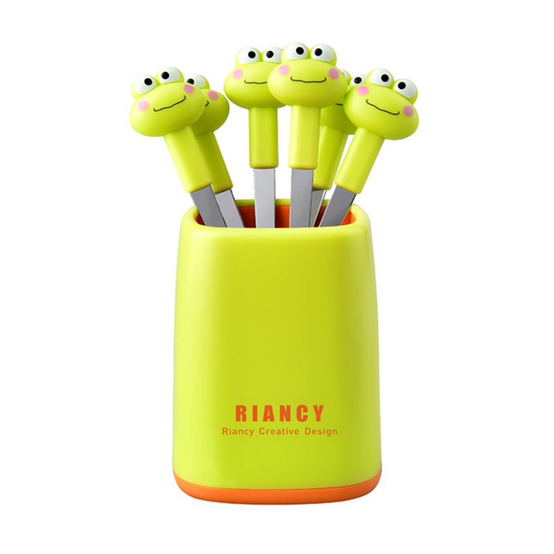 rb704 cartoon stainless steel dessert cake cute fruit fork set fruit toothpick two-tooth fork factory customization
