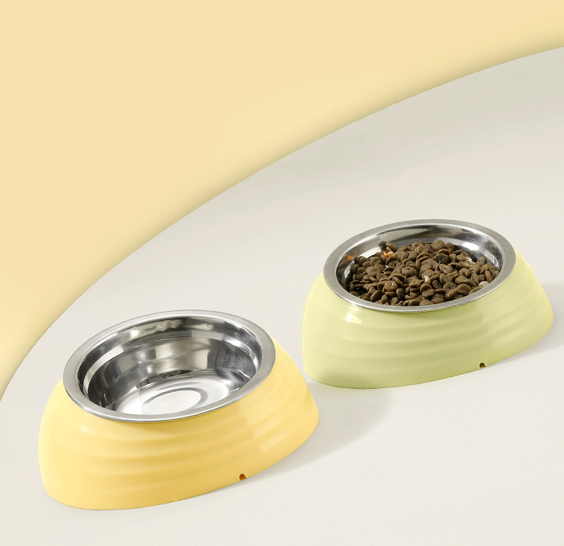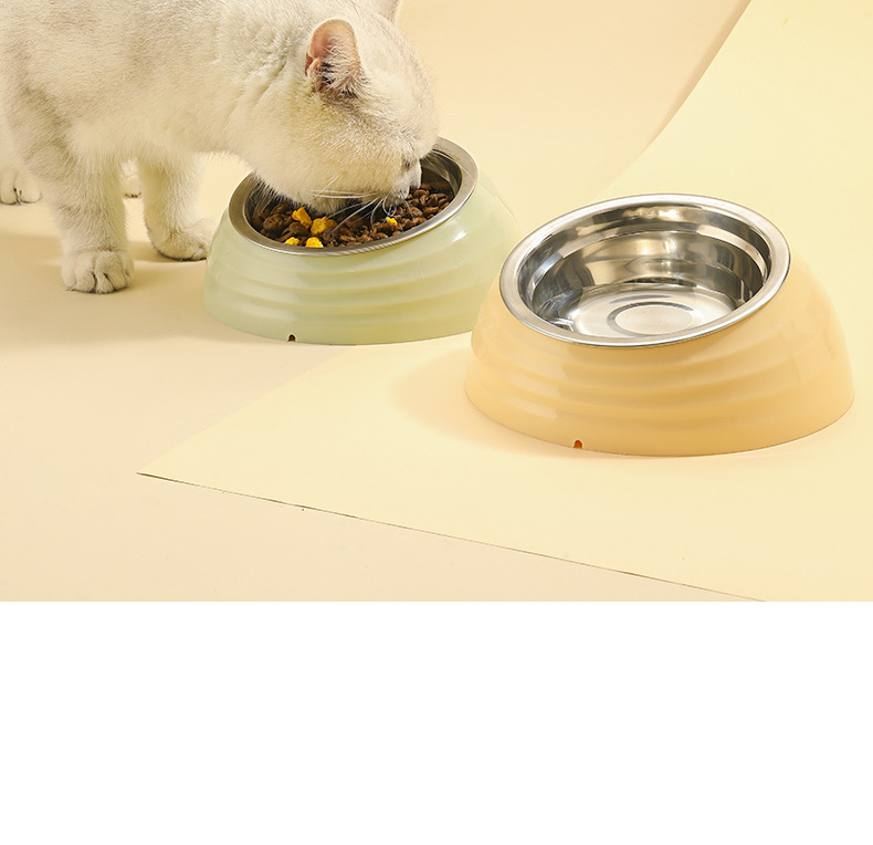 original new pet bowl stainless steel bowl dog bowl feeder neck protection oblique mouth food bowl dog basin pet tableware