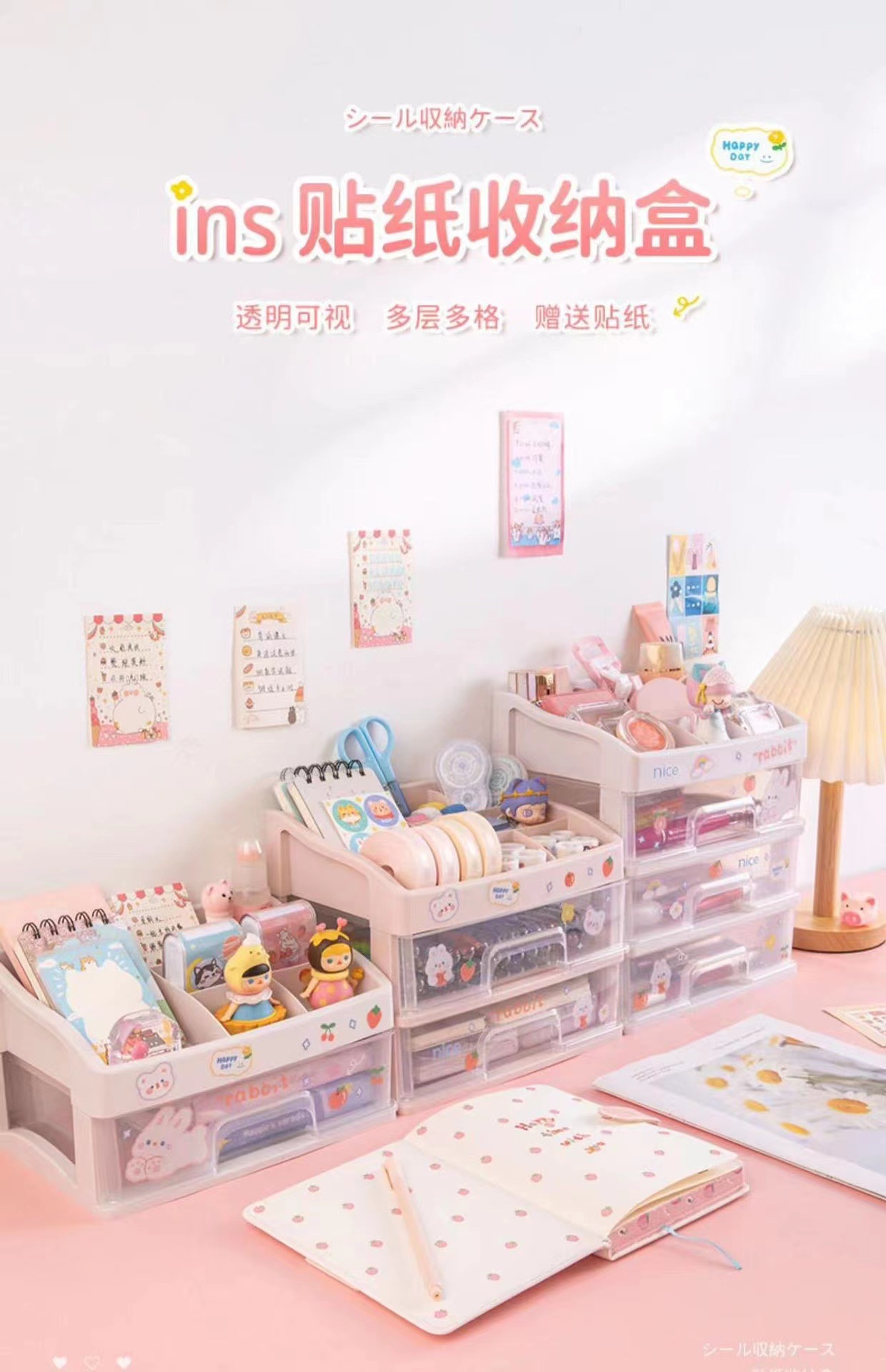 pink four layers 3 drawers + original stickers CN¥ 9.36 49904 piece available