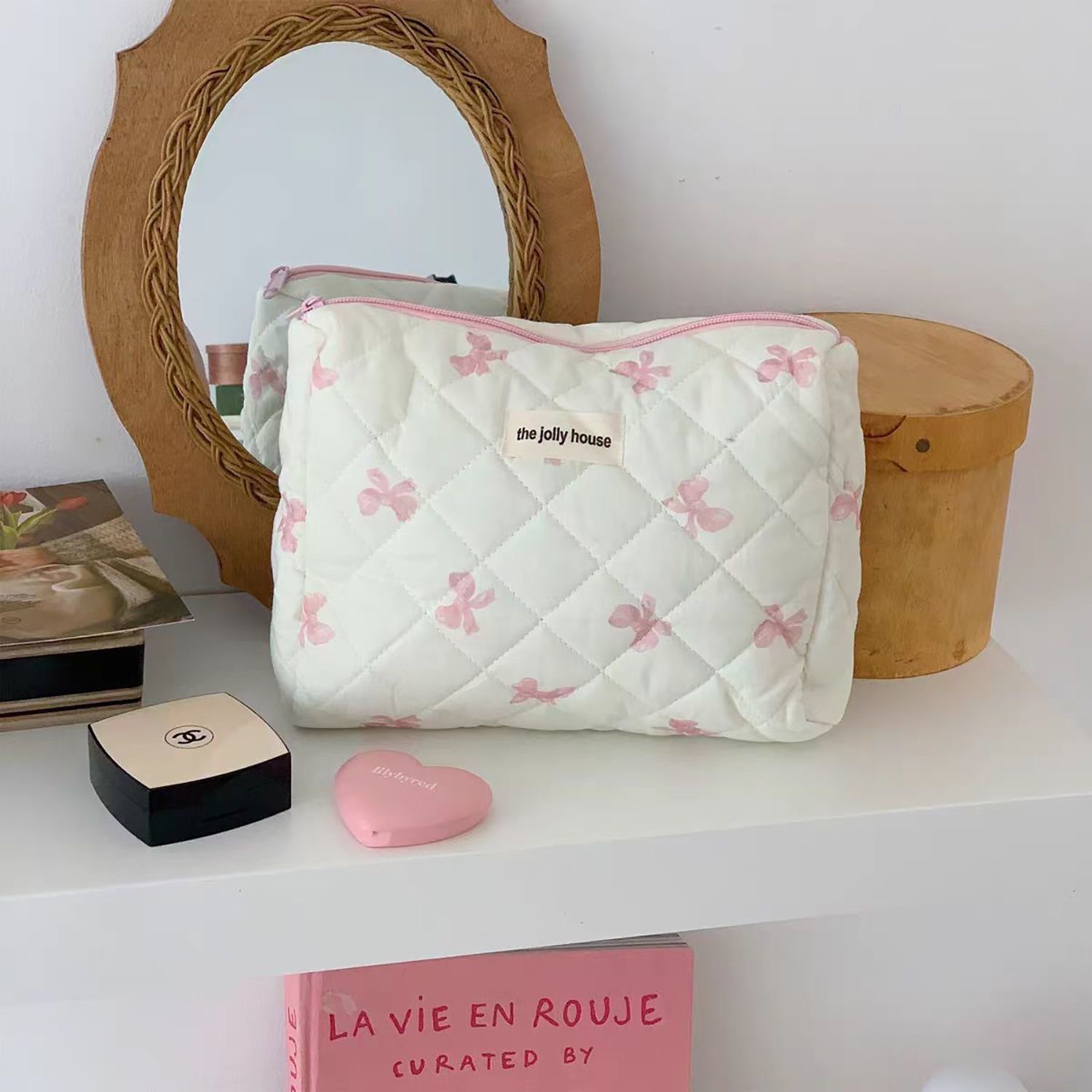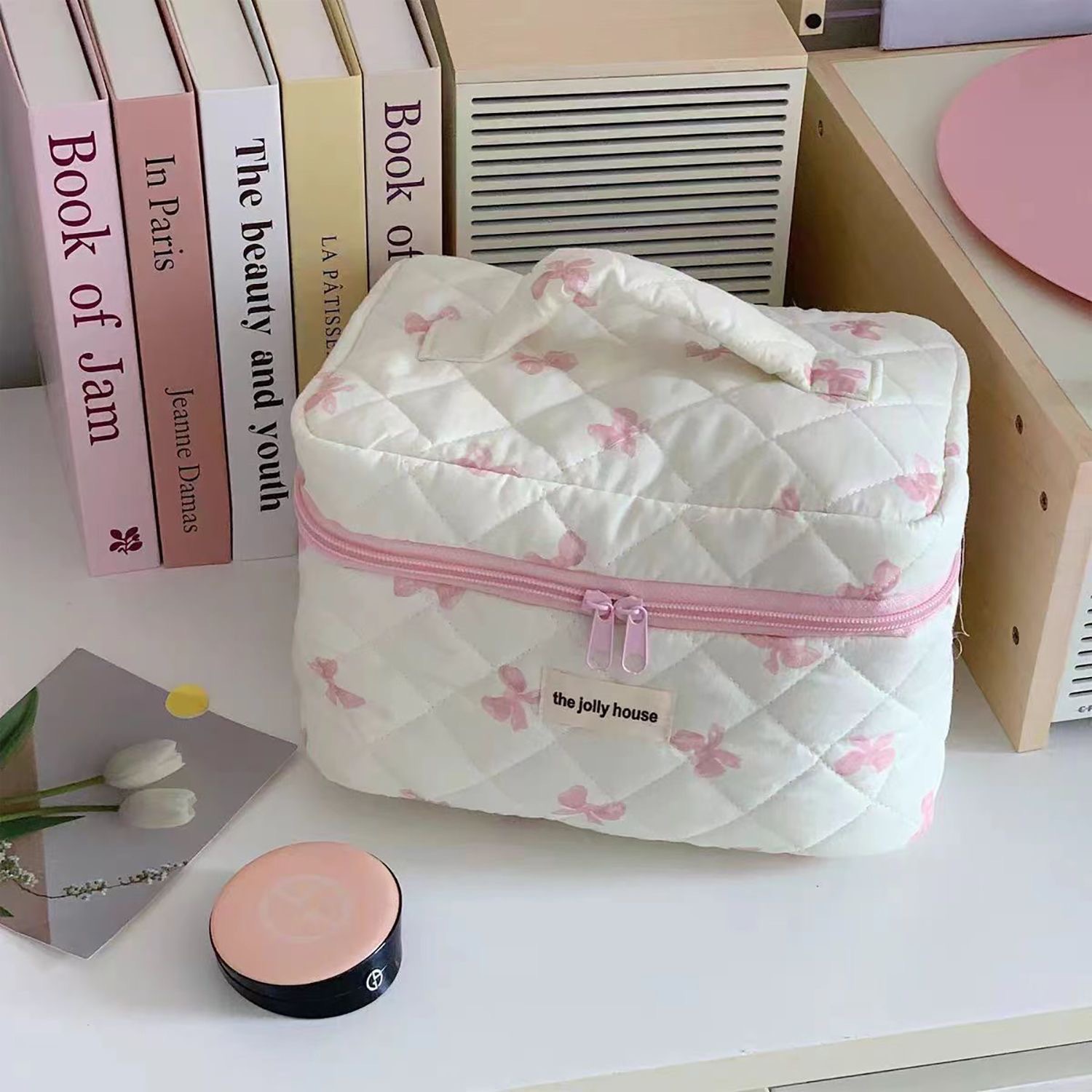 quilted bow pink [cosmetic bag]]