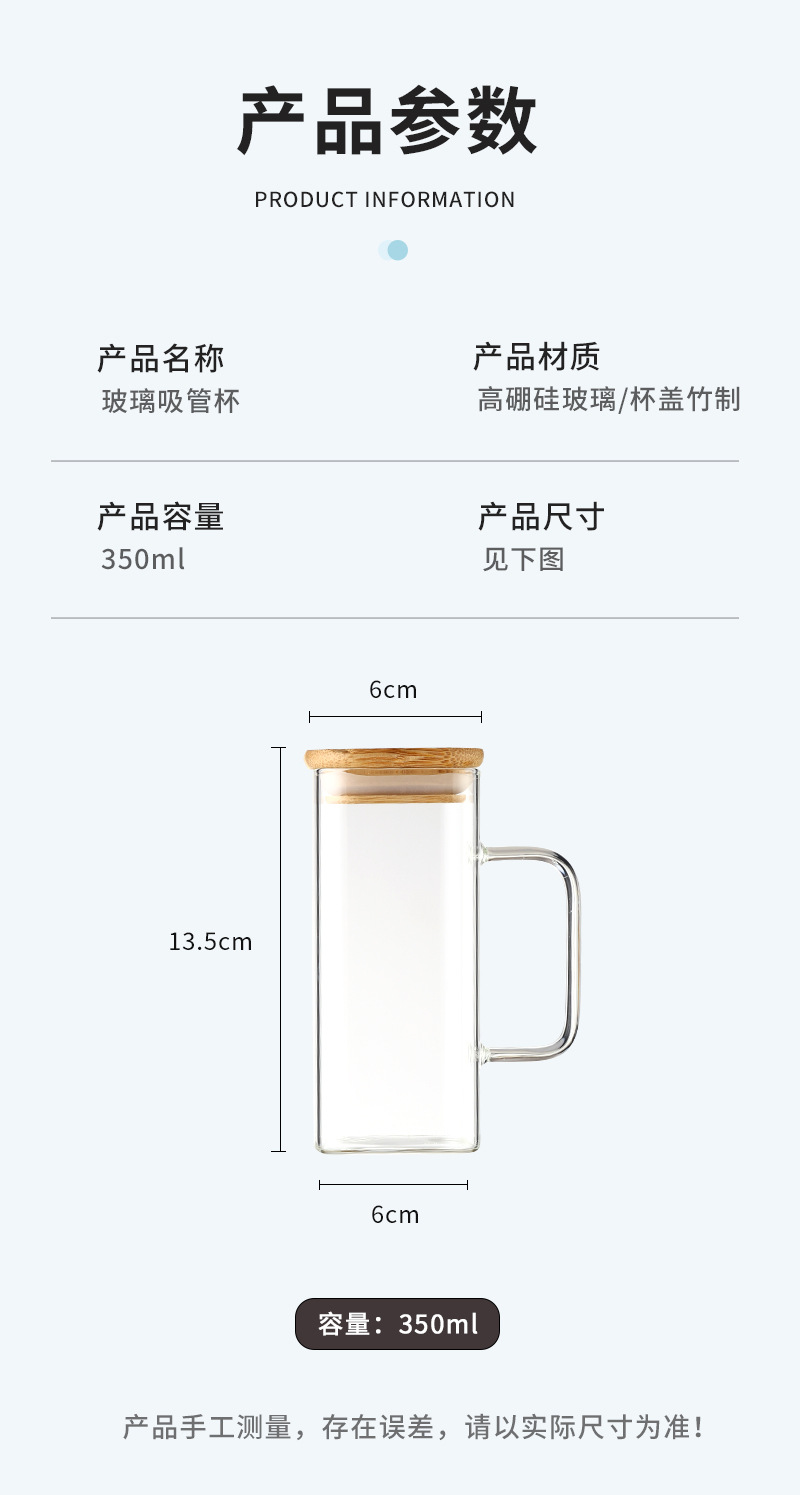 350ML Square Straw Cup: Diameter 60mm, Height 135mm, Base Diameter 60mm;