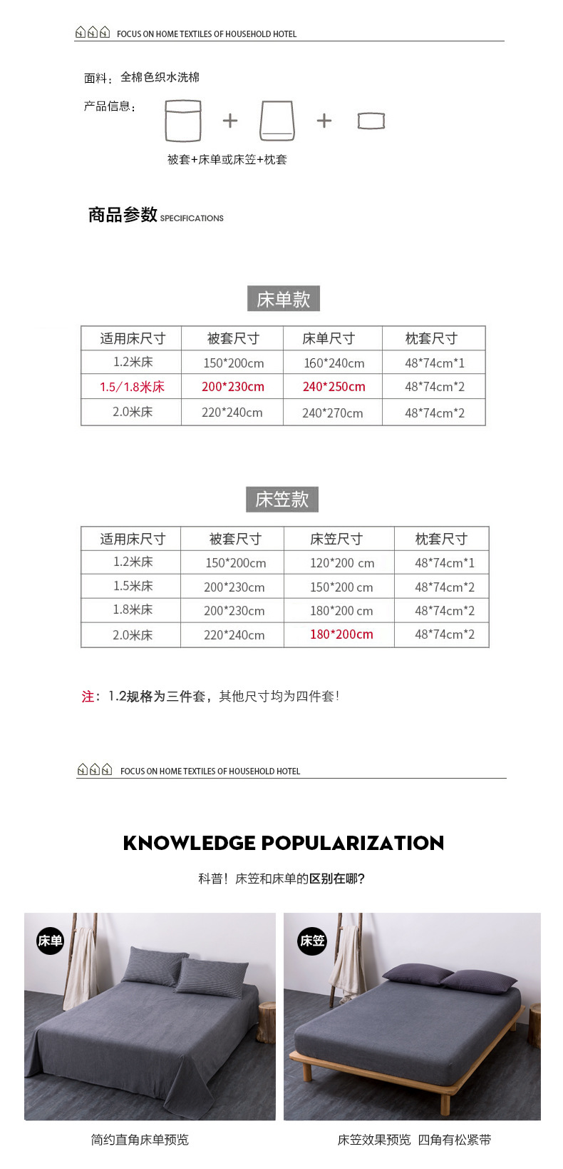 | [1.5 fitted sheet quilt cover 200*230 fitted sheet 150*200 pillowcase 48*74*2 | CN¥ 180.0 | 5000 set available |