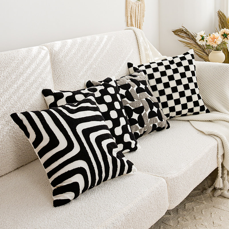 Pillow Cover Sofa Cushion B and White Pid Simple Element Towel Embroidered Bedside Cushion Office Model Room Waist Pillow