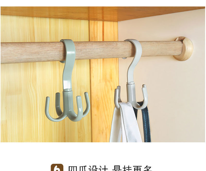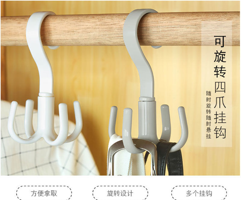 rotating four-cw hook household multi-functional coat hook pannier bag tie ra wardrobe punch-free scarf storage ra